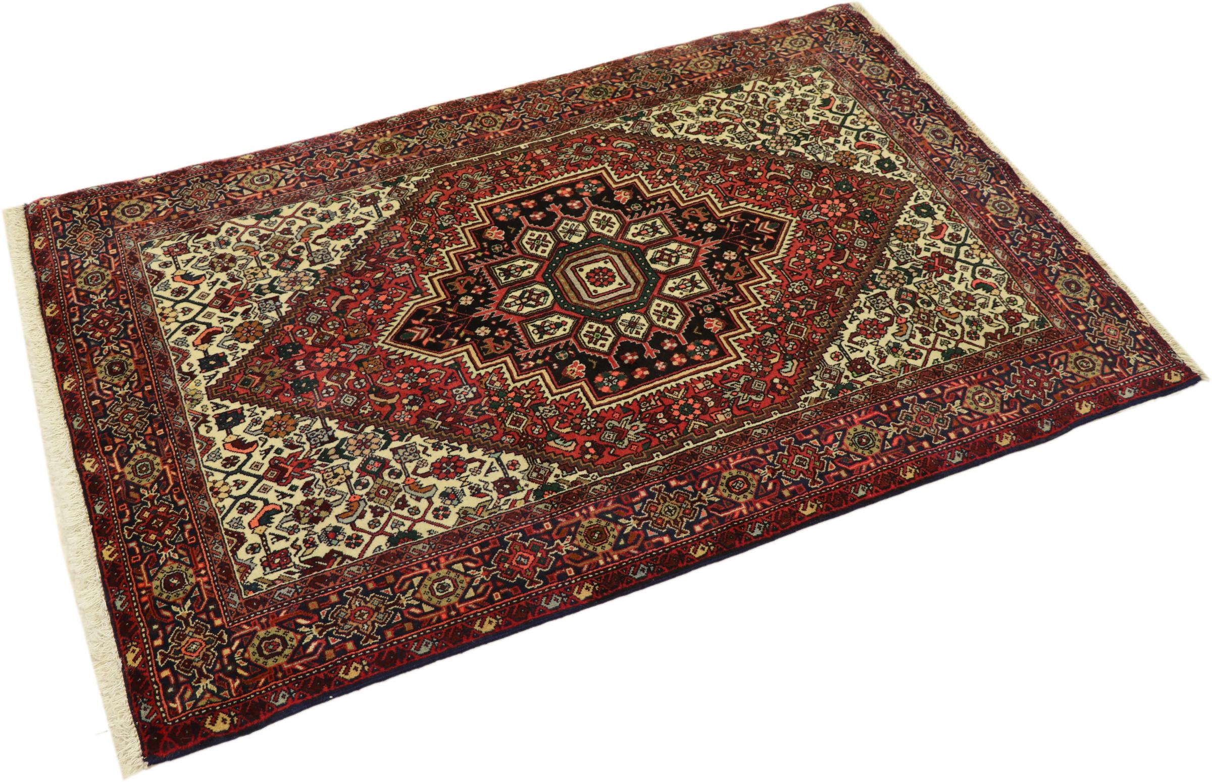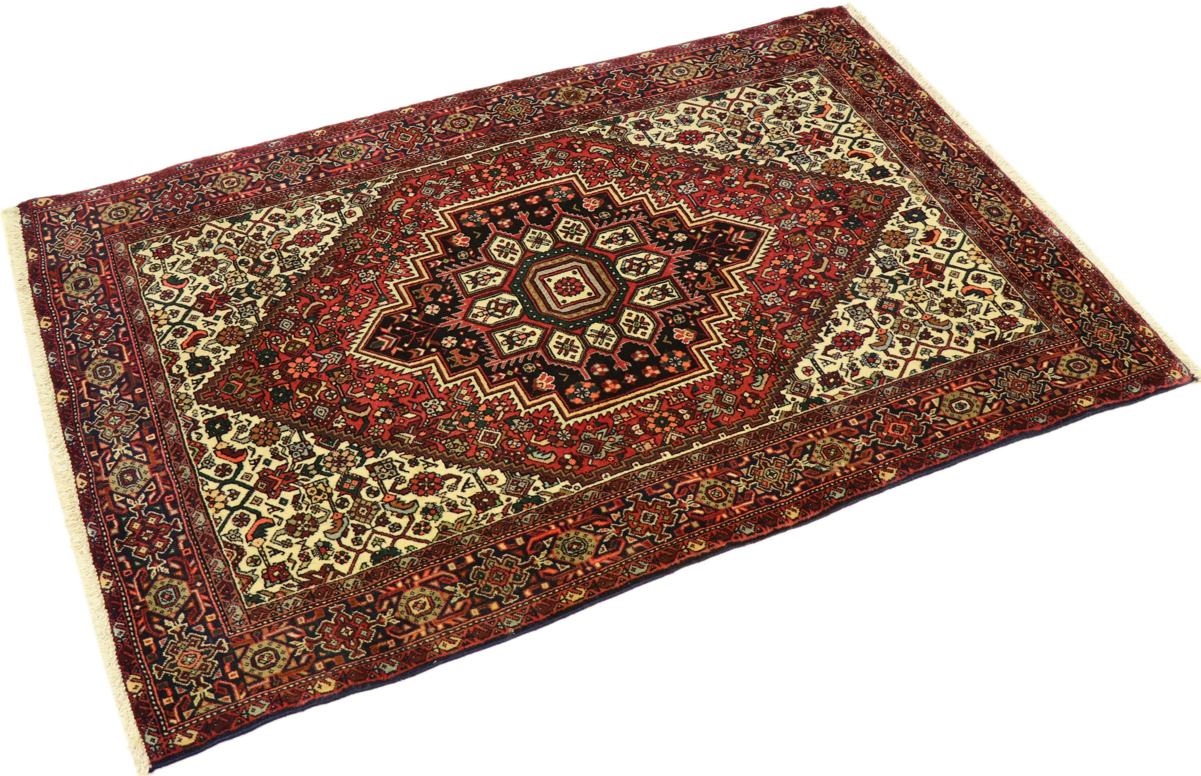 Αυτό το χαλί ανήκει σε χωριάτικα και νομαδικά χαλιά από το Ιράν, πρώην Περσία. Αυτό το είδος χαλιού δένεται με το χέρι σε μικρές πόλεις και χωριά κατά την παλιά παράδοση. Ακόμη και νομάδες εξακολουθούν να υφαίνουν περσικά χαλιά στο ύπαιθρο. Τα χαλιά είναι δεμένα με κόμπους χωρίς πρόπλασμα και εντελώς από το κεφάλι. Χαρακτηρίζονται από κλασικά στολίδια που απλώνονται σε γραμμικά και γεωμετρικά σχέδια. Χάρη στην πολιτιστική-παραδοσιακή τους προέλευση, αυτά τα χαλιά έχουν έναν μοναδικό χαρακτήρα που ενσαρκώνει την αρχαία Περσία.