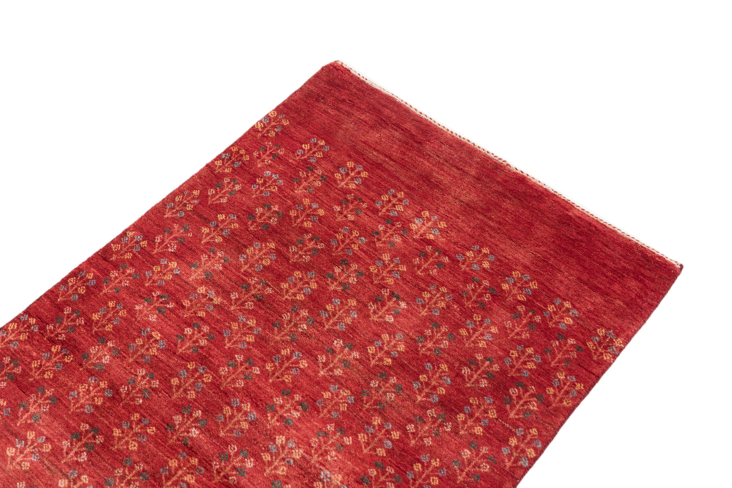 Αυτό το όμορφο χαλί είναι περσικό χαλί Gabbeh και είναι ένα από τα ποιοτικότερα χαλιά Gabbeh. Τα χαλιά δένονται από νομάδες ή ημινομάδες στο Ιράν σύμφωνα με την παραδοσιακή χειροτεχνία. Τα απλά μοτίβα και τα σχέδια είναι κυρίως εμπνευσμένα από το άμεσο περιβάλλον των νομάδων. Για παράδειγμα, καμήλες, δέντρα ή θάμνοι μπορούν να βρεθούν στα παραδοσιακά χαλιά. Τα περσικά χαλιά Gabbeh κατασκευάζονται από μαλλί από κοπάδια προβάτων που εκτρέφονται τοπικά. Ως εκ τούτου, το μαλλί ως επί το πλείστον εξακολουθεί να κλώνεται με το χέρι. Κάθε ένα από αυτά τα ανατολίτικα χαλιά ενσαρκώνει έναν μοναδικό χαρακτήρα αιώνων πολιτισμού.