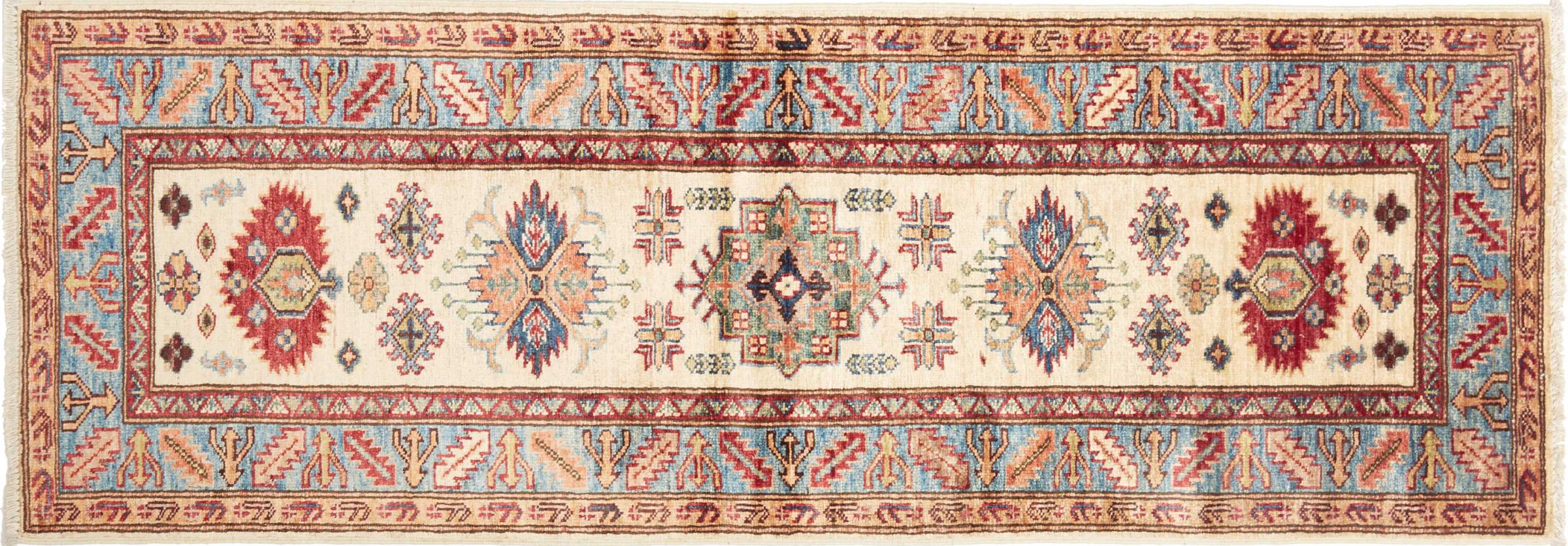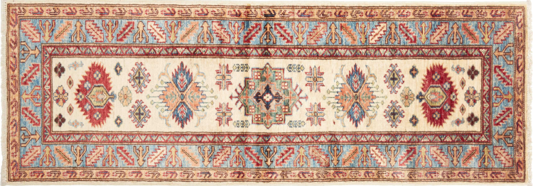 Τα χαλιά Καζάκ area είναι ανθεκτικά, ζωντανά μάλλινα χαλιά γνωστά για τα μοναδικά γεωμετρικά τους σχέδια, τα ισορροπημένα χρώματα και την εξαιρετική δεξιοτεχνία τους. Θα δημιουργήσουν μια σαγηνευτική και πολιτιστικά πλούσια ατμόσφαιρα στο χώρο σας. Με καταγωγή από τον Καύκασο και ένα από τα παλαιότερα είδη χαλιών, τώρα κατασκευάζονται κυρίως από Καζάκους στο Αφγανιστάν και το Πακιστάν. Ένα παλιό χαλί Καζάκ μπορεί να είναι πολύτιμο για τους συλλέκτες.