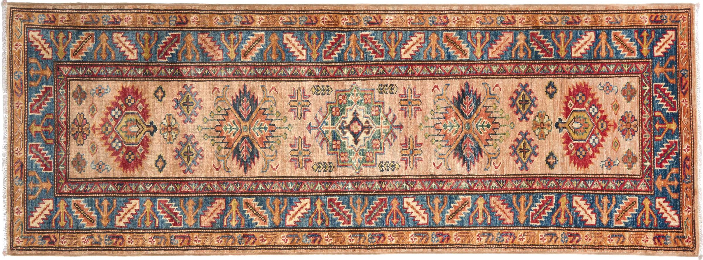 Τα χαλιά Καζάκ area είναι ανθεκτικά, ζωντανά μάλλινα χαλιά γνωστά για τα μοναδικά γεωμετρικά τους σχέδια, τα ισορροπημένα χρώματα και την εξαιρετική δεξιοτεχνία τους. Θα δημιουργήσουν μια σαγηνευτική και πολιτιστικά πλούσια ατμόσφαιρα στο χώρο σας. Με καταγωγή από τον Καύκασο και ένα από τα παλαιότερα είδη χαλιών, τώρα κατασκευάζονται κυρίως από Καζάκους στο Αφγανιστάν και το Πακιστάν. Ένα παλιό χαλί Καζάκ μπορεί να είναι πολύτιμο για τους συλλέκτες.