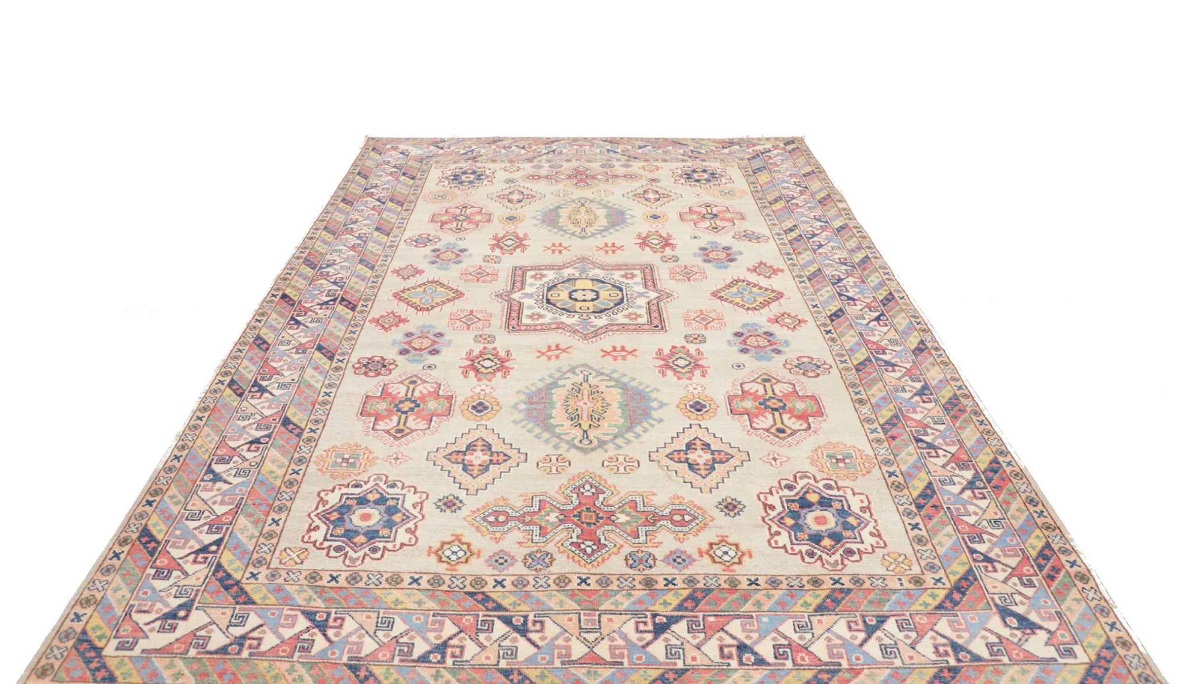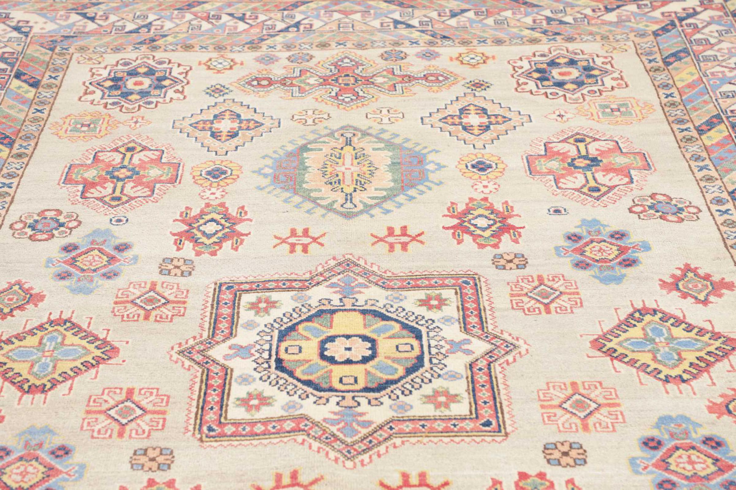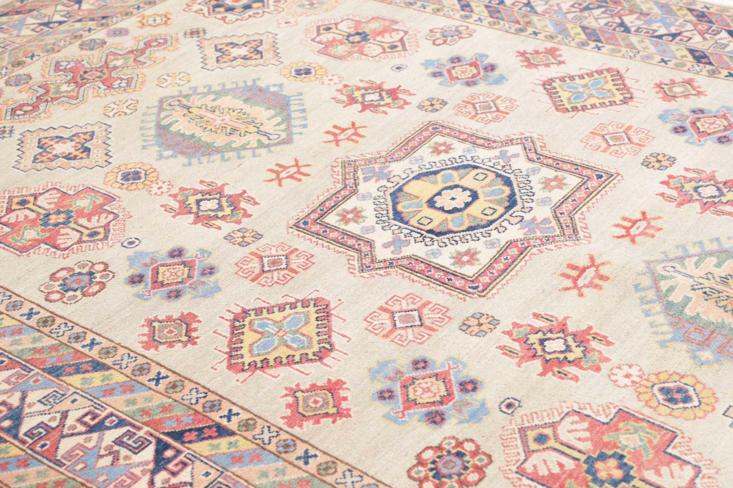 Τα χαλιά Καζάκ area είναι ανθεκτικά, ζωντανά μάλλινα χαλιά γνωστά για τα μοναδικά γεωμετρικά τους σχέδια, τα ισορροπημένα χρώματα και την εξαιρετική δεξιοτεχνία τους. Θα δημιουργήσουν μια σαγηνευτική και πολιτιστικά πλούσια ατμόσφαιρα στο χώρο σας. Με καταγωγή από τον Καύκασο και ένα από τα παλαιότερα είδη χαλιών, τώρα κατασκευάζονται κυρίως από Καζάκους στο Αφγανιστάν και το Πακιστάν. Ένα παλιό χαλί Καζάκ μπορεί να είναι πολύτιμο για τους συλλέκτες.