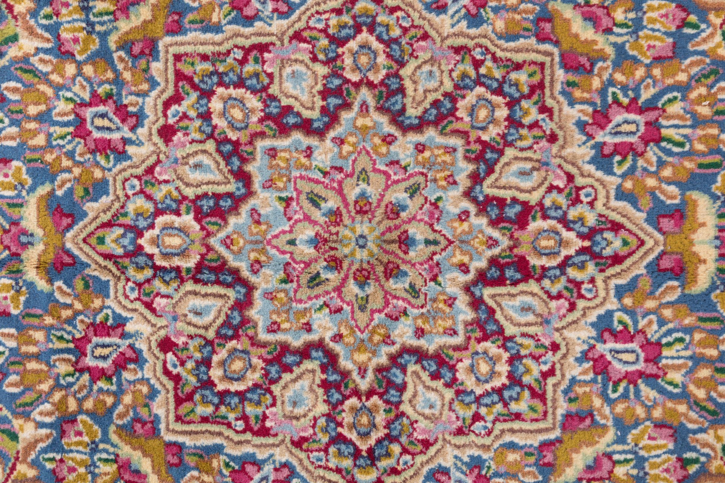 Τα χειροποίητα χαλιά από την έρημη πόλη του Κερμάν θεωρούνταν κάποτε ως από τα καλύτερα περσικά και ανατολίτικα χαλιά γενικότερα. Σήμερα αυτή η φήμη δεν ισχύει πλέον, αλλά αυτά τα περσικά χαλιά εξακολουθούν να είναι αναμφισβήτητα μεταξύ των ποιοτικότερων ανατολίτικων χαλιών. Τα χαλιά Kerman είναι γνωστά για τα πλούσια λουλουδάτα σχέδια, τα έντονα φυτικά χρώματα και τα επιδεικτικά κεντρικά μενταγιόν τους. Τα χαλιά Kerman έχουν μακρά παράδοση.