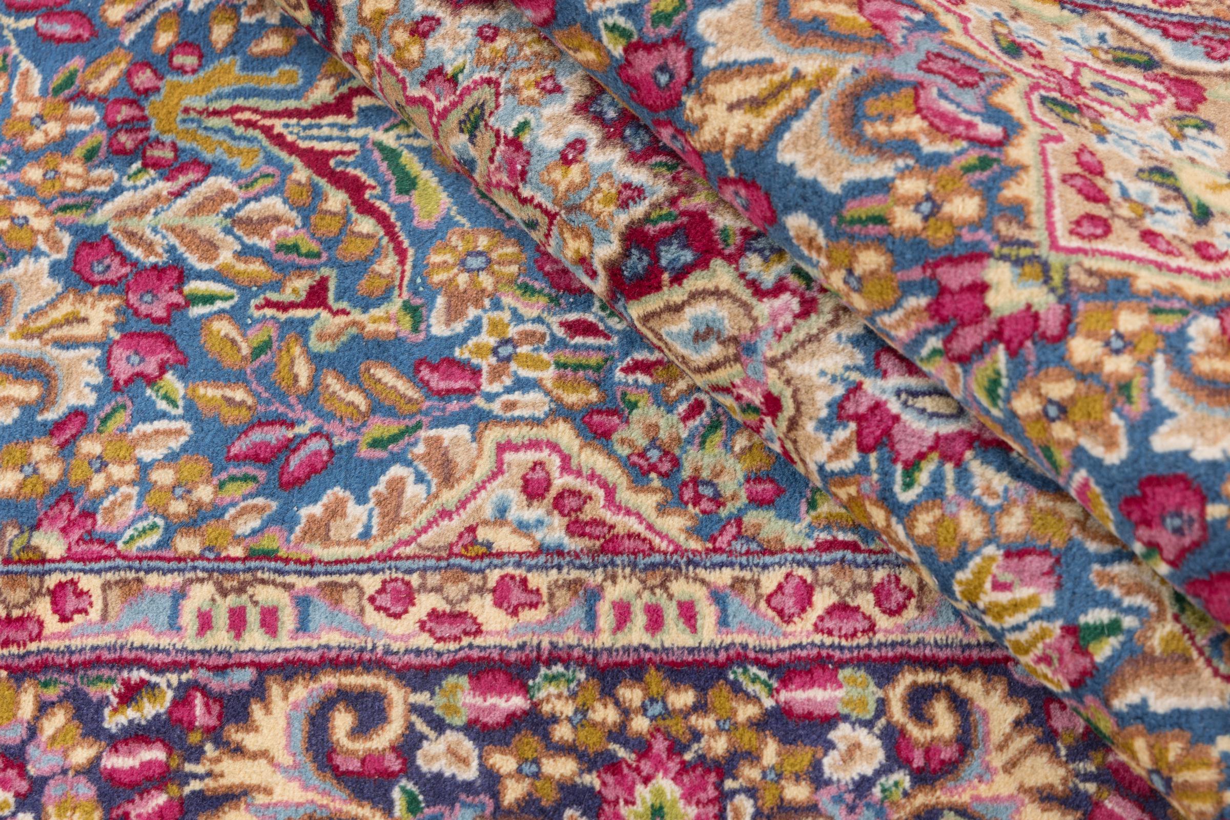 Αυτό το χαλί Kerman εντυπωσιάζει με την ποιότητα και τον σχεδιασμό του. Πλέχτηκε στο χέρι στην πόλη Kerman, μια όαση σε μια έρημο μακριά από την Τεχεράνη, από νήματα υψηλής ποιότητας σε διάστημα μηνών. Δείτε αυτό το έργο τέχνης με τα μάτια σας. Δίνει στο δωμάτιό σας μια όμορφη ανατολίτικη πινελιά με φυτικά στολίδια.