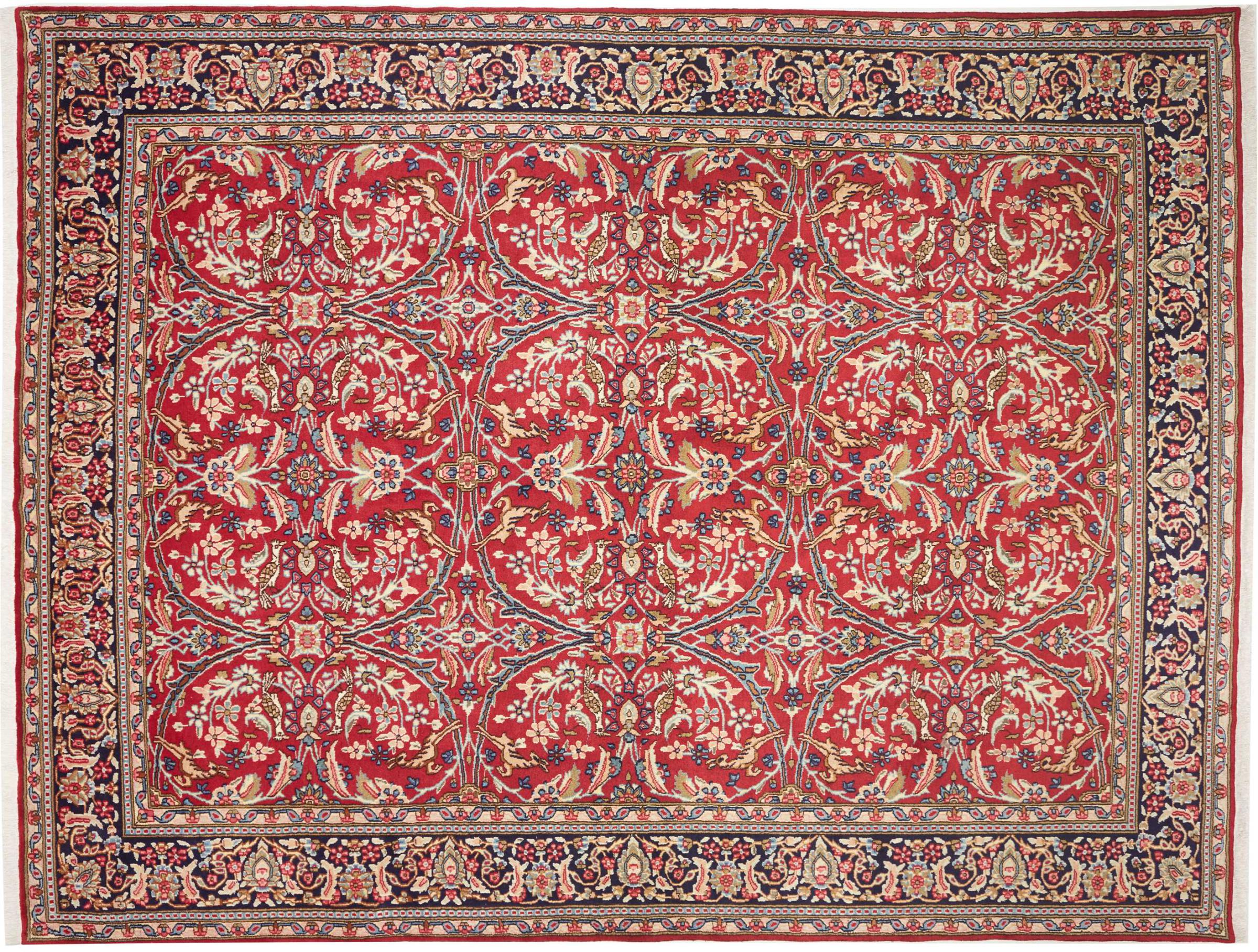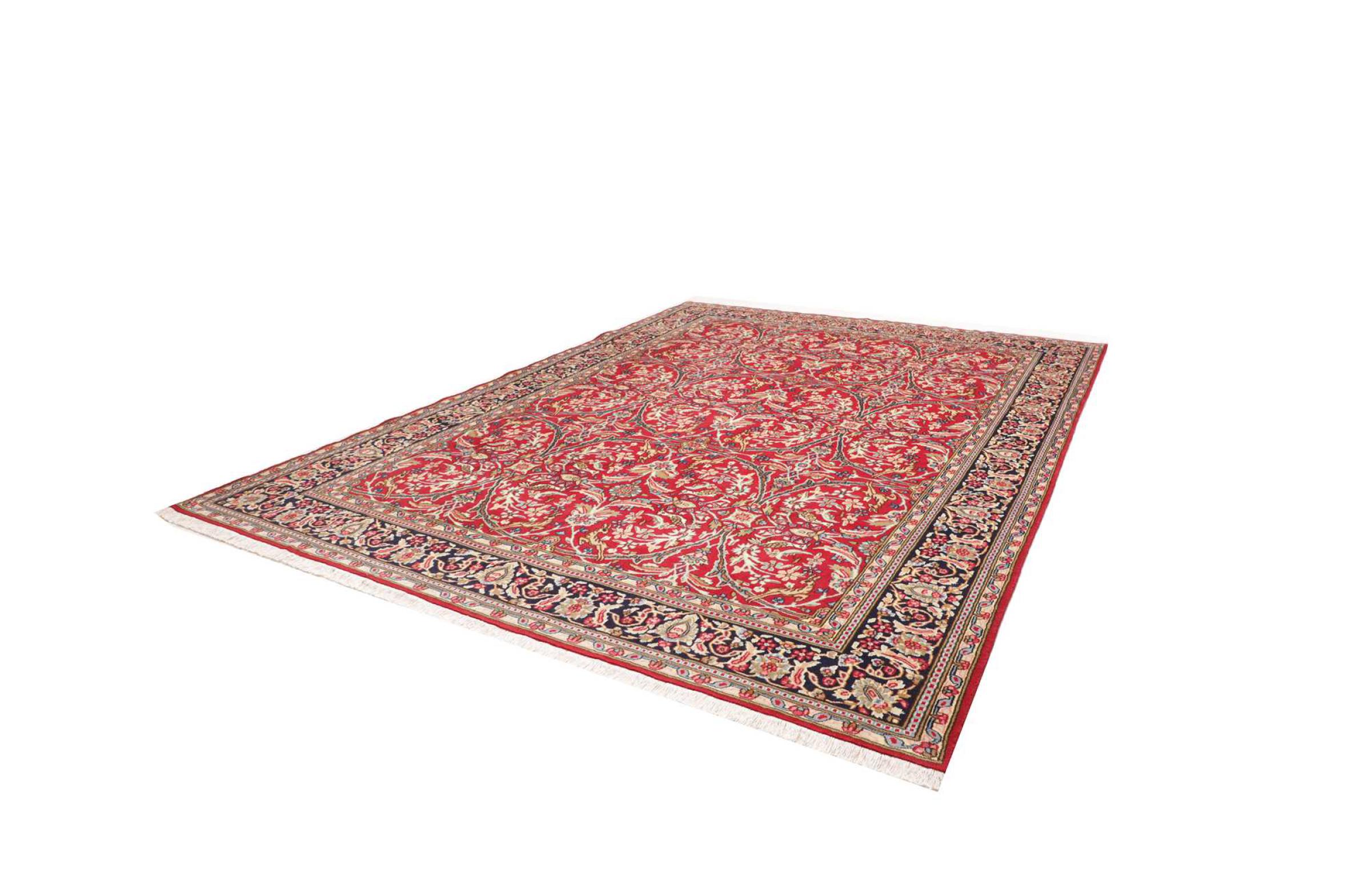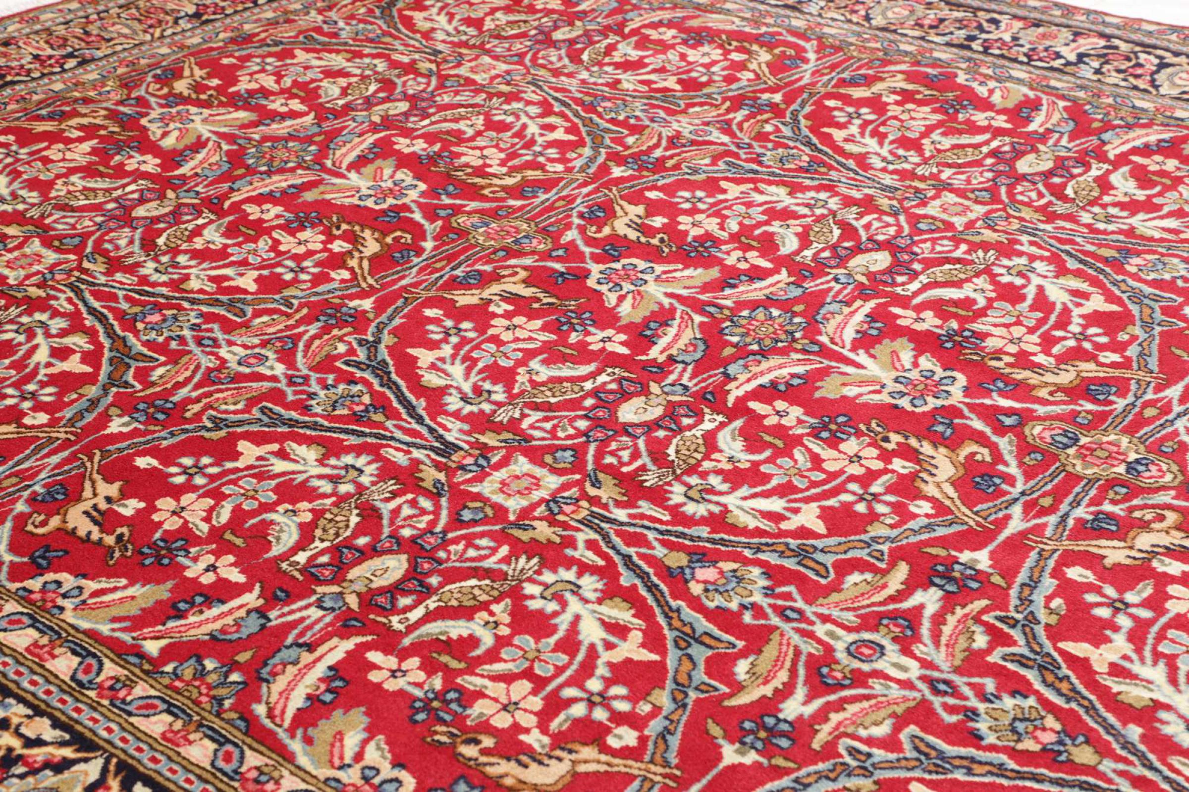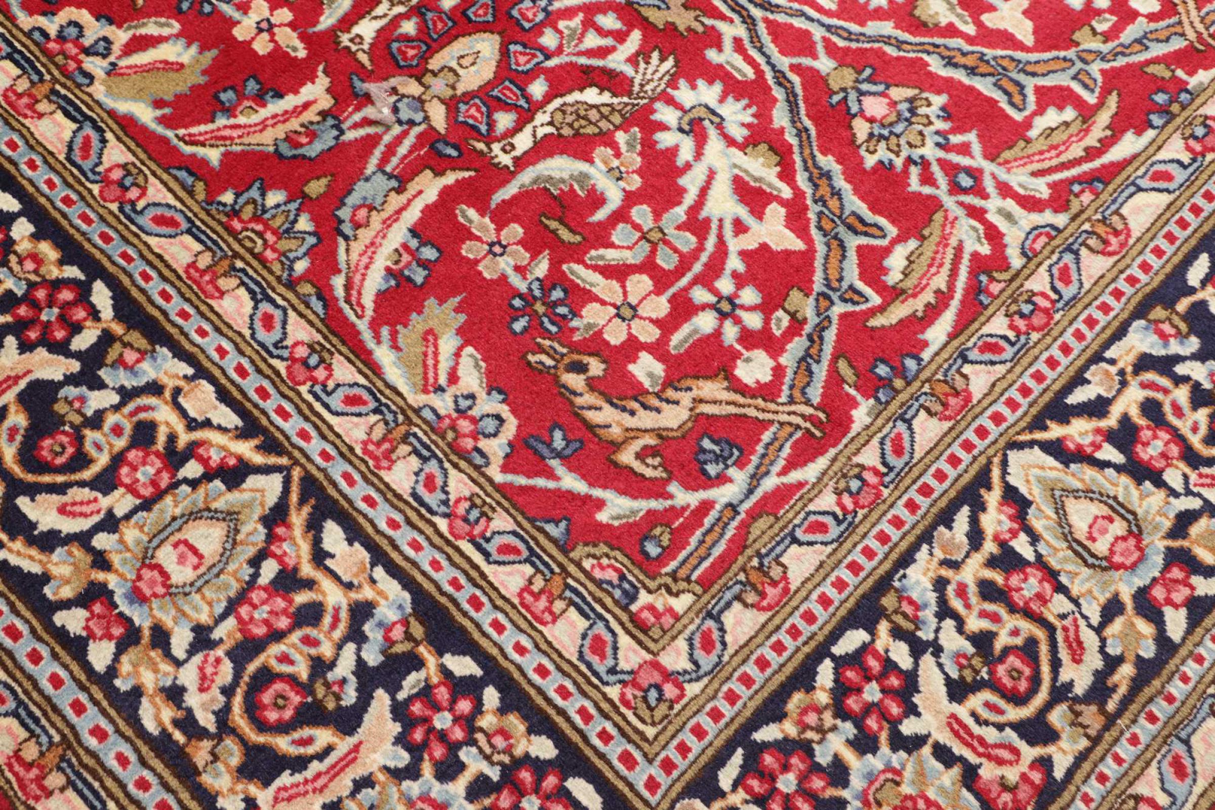 Αυτό το χαλί Kerman εντυπωσιάζει με την ποιότητα και τον σχεδιασμό του. Πλέχτηκε στο χέρι στην πόλη Kerman, μια όαση σε μια έρημο μακριά από την Τεχεράνη, από νήματα υψηλής ποιότητας σε διάστημα μηνών. Δείτε αυτό το έργο τέχνης με τα μάτια σας. Δίνει στο δωμάτιό σας μια όμορφη ανατολίτικη πινελιά με φυτικά στολίδια.