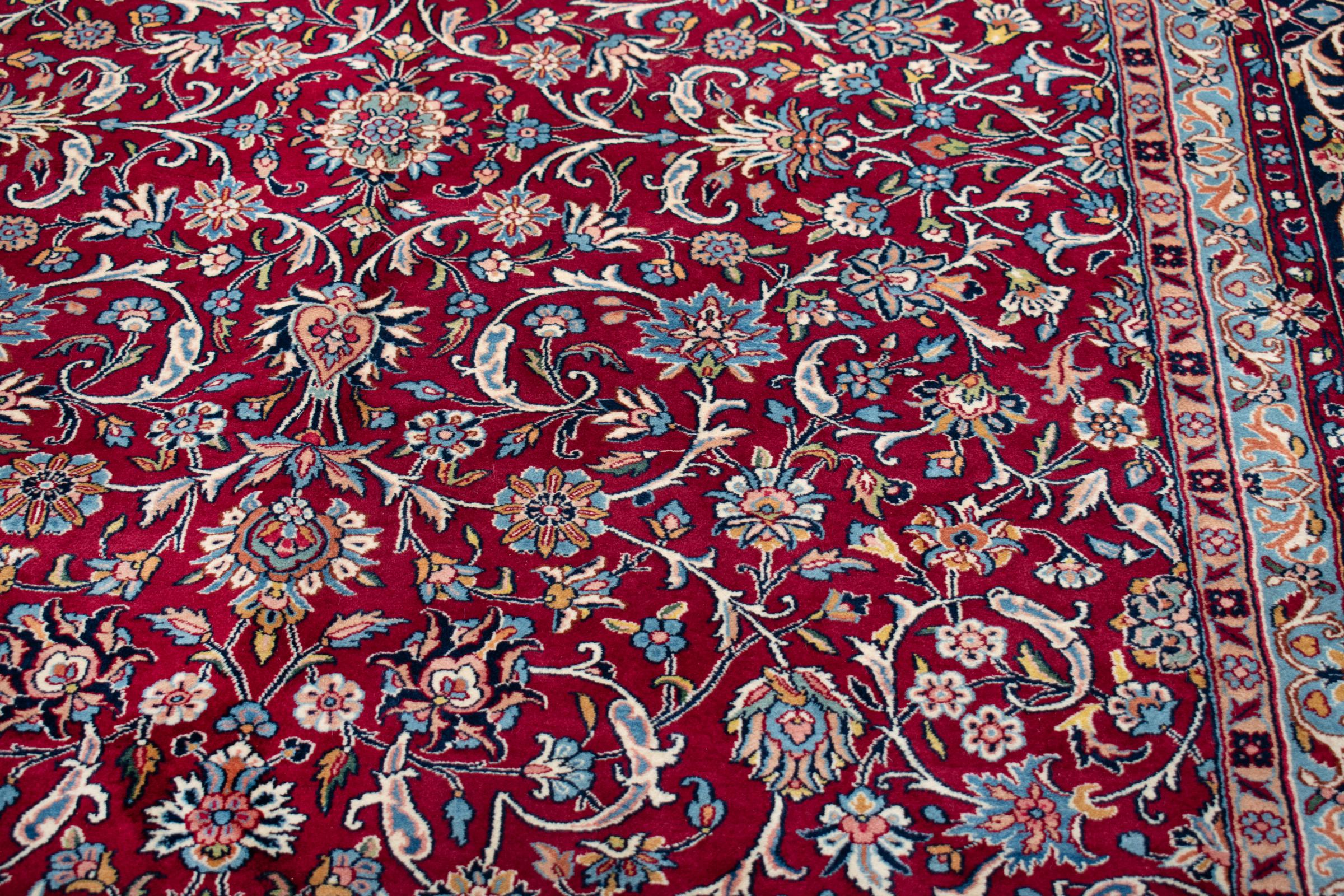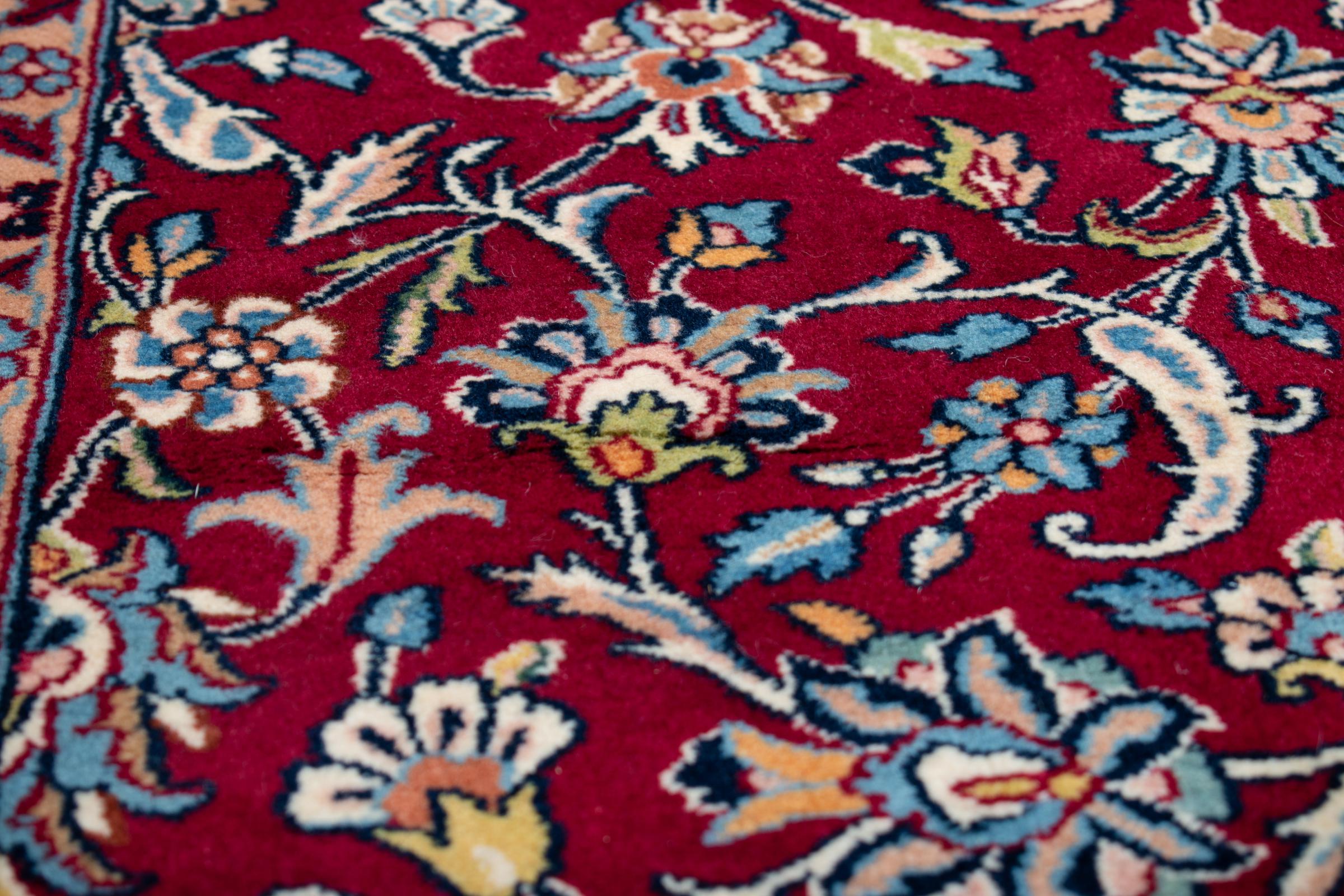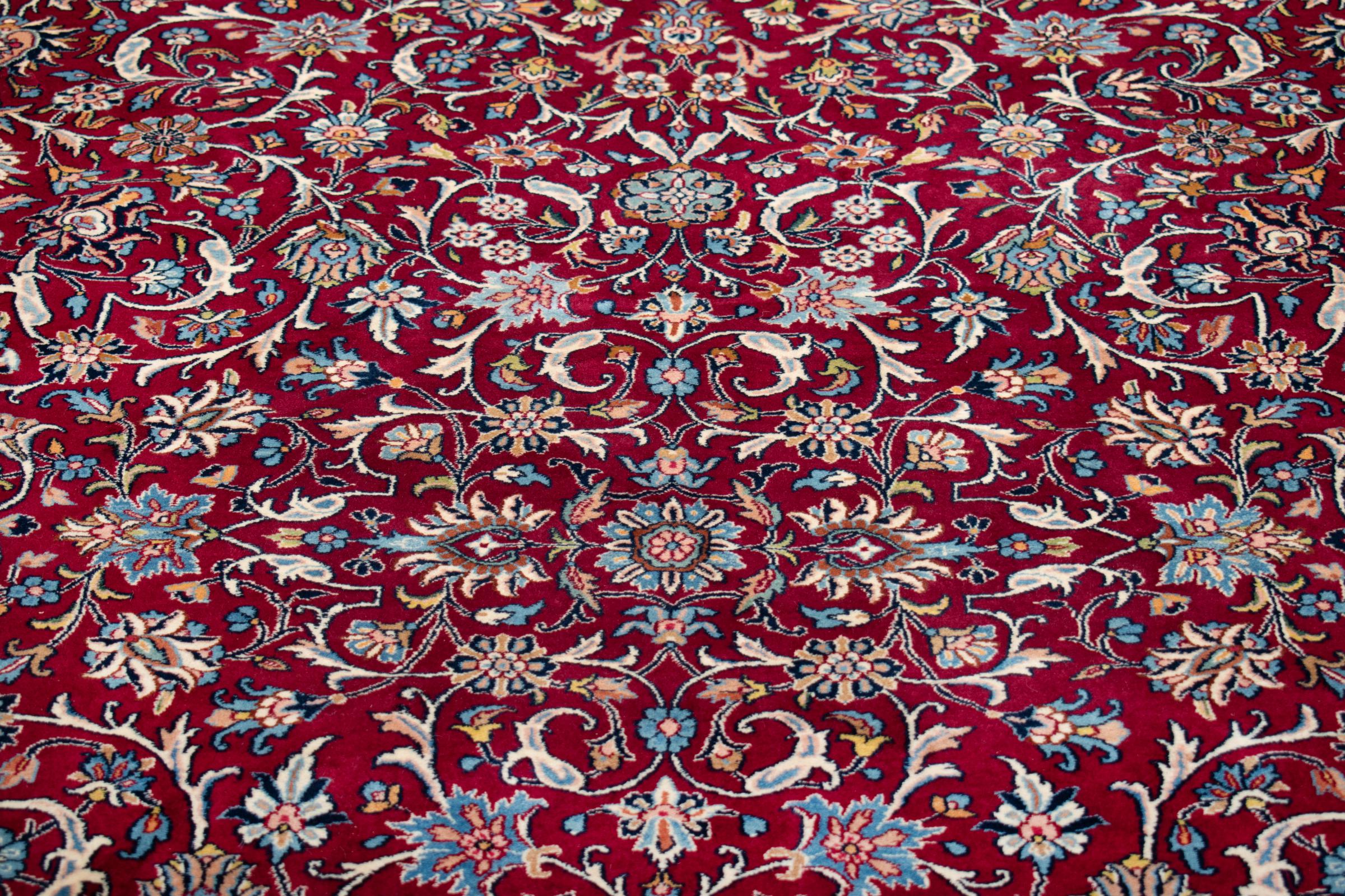 Αυτό το χαλί Kerman εντυπωσιάζει με την ποιότητα και τον σχεδιασμό του. Πλέχτηκε στο χέρι στην πόλη Kerman, μια όαση σε μια έρημο μακριά από την Τεχεράνη, από νήματα υψηλής ποιότητας σε διάστημα μηνών. Δείτε αυτό το έργο τέχνης με τα μάτια σας. Δίνει στο δωμάτιό σας μια όμορφη ανατολίτικη πινελιά με φυτικά στολίδια.