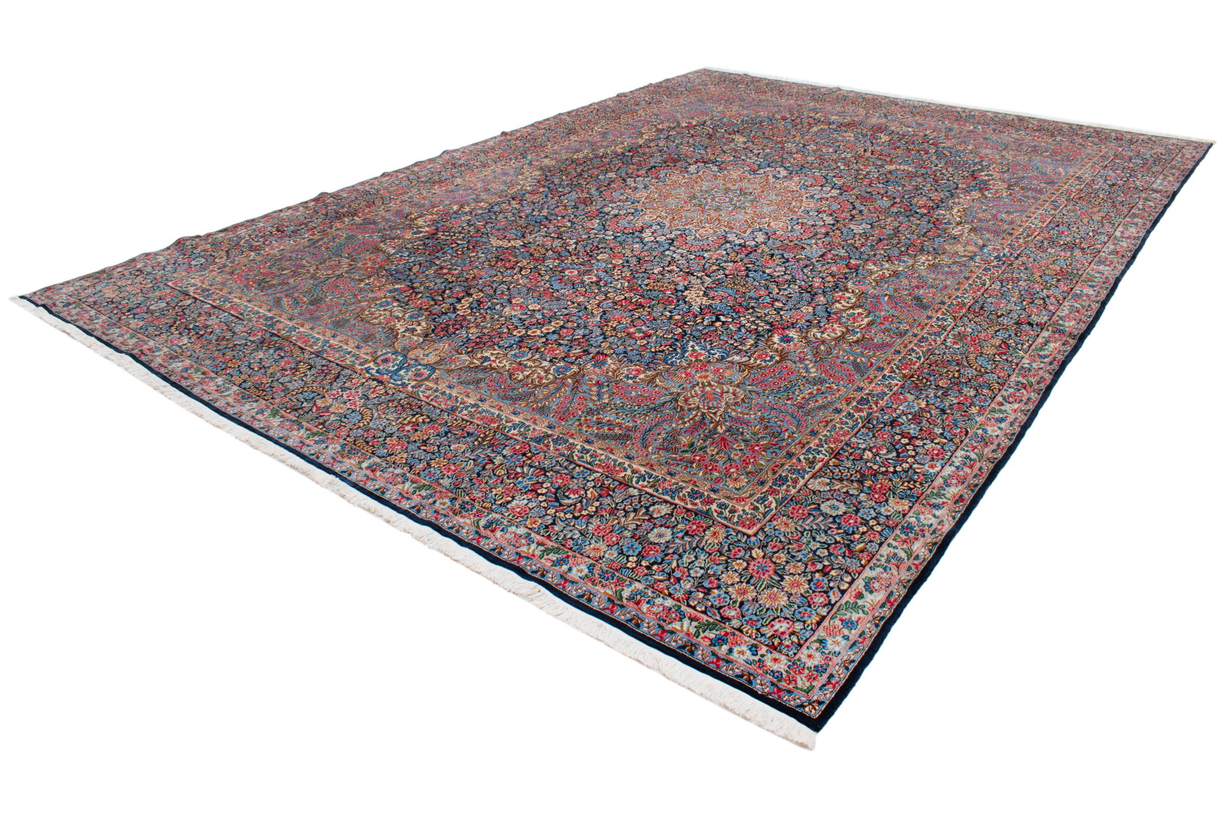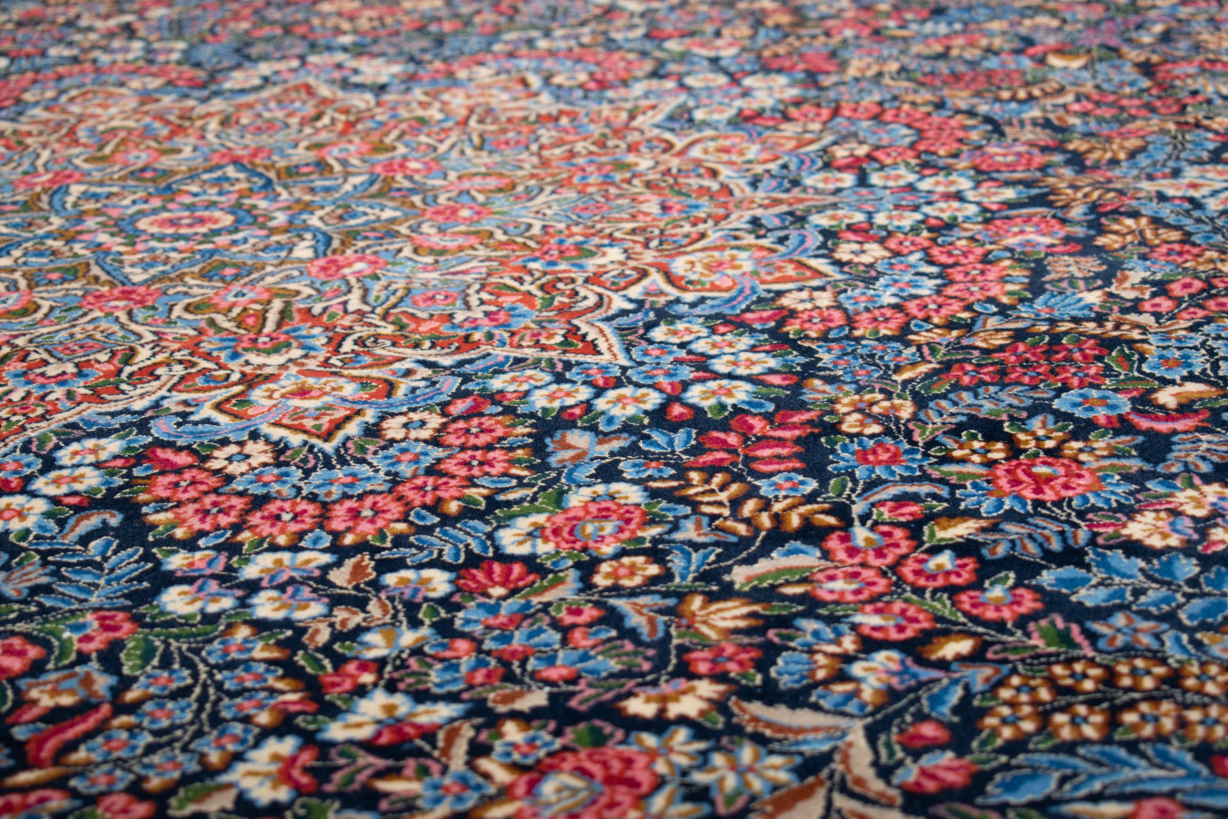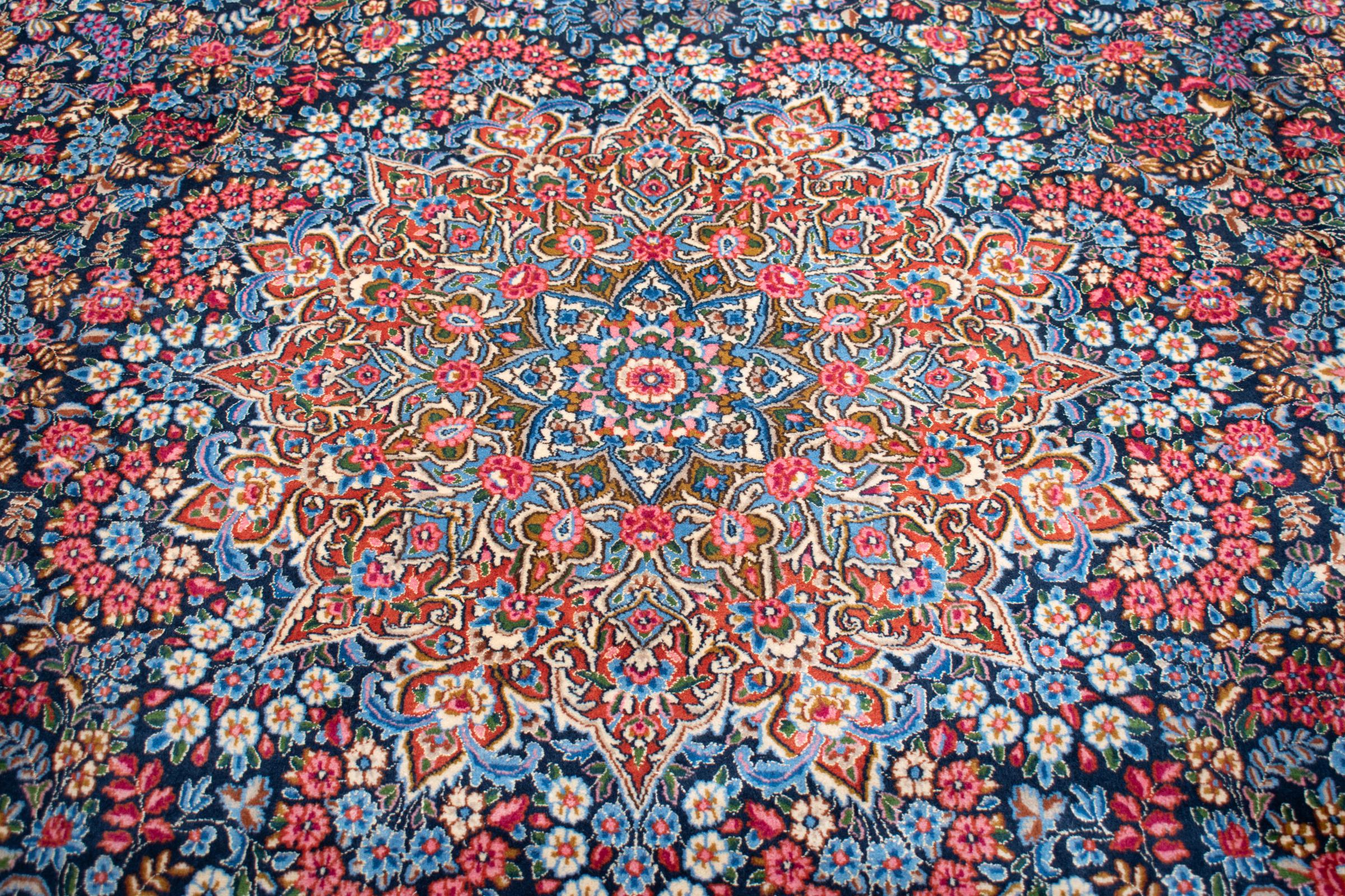 Αυτό το χαλί Kerman εντυπωσιάζει με την ποιότητα και τον σχεδιασμό του. Πλέχτηκε στο χέρι στην πόλη Kerman, μια όαση σε μια έρημο μακριά από την Τεχεράνη, από νήματα υψηλής ποιότητας σε διάστημα μηνών. Δείτε αυτό το έργο τέχνης με τα μάτια σας. Δίνει στο δωμάτιό σας μια όμορφη ανατολίτικη πινελιά με φυτικά στολίδια.