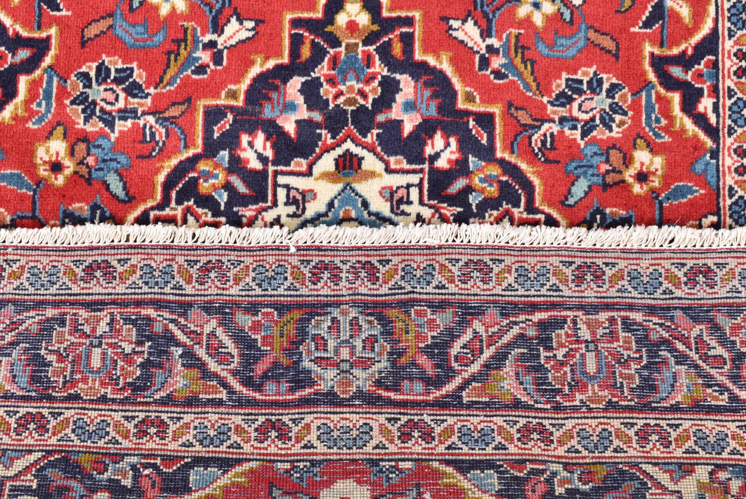 Αυτό το χαλί από το Kashan συγκρατείται από το πολύ παραδοσιακό και τυπικά περσικό σχέδιό του με όμορφα στολίδια. Τα χαλιά Kashan είναι πολύ δημοφιλή λόγω του εξαιρετικά κομψού σχεδιασμού τους. Αυτά τα χαλιά προέρχονται από το Χασάν, μια πόλη στον αρχαίο Δρόμο του Μεταξιού. Αυτό το χαλί έχει πλεγεί στο χέρι από υψηλής ποιότητας μαλλί προβάτου και θα είναι ένα μοναδικό θέαμα στο σπίτι σας.