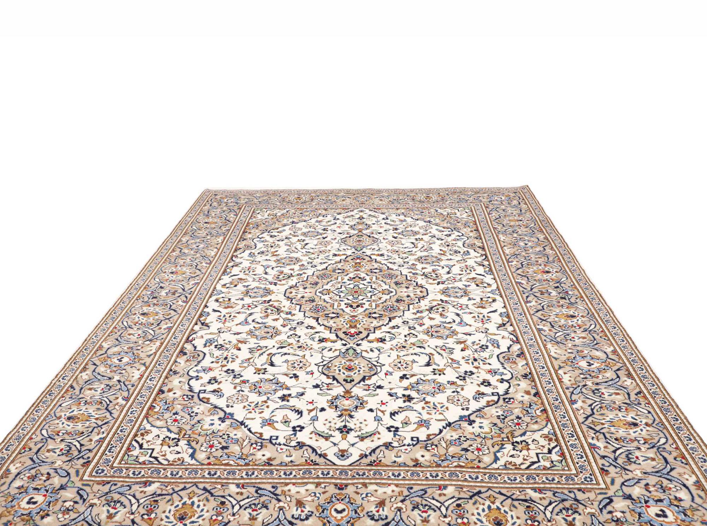 Αυτό το χαλί από το Kashan συγκρατείται από το πολύ παραδοσιακό και τυπικά περσικό σχέδιό του με όμορφα στολίδια. Τα χαλιά Kashan είναι πολύ δημοφιλή λόγω του εξαιρετικά κομψού σχεδιασμού τους. Αυτά τα χαλιά προέρχονται από το Χασάν, μια πόλη στον αρχαίο Δρόμο του Μεταξιού. Αυτό το χαλί έχει πλεγεί στο χέρι από υψηλής ποιότητας μαλλί προβάτου και θα είναι ένα μοναδικό θέαμα στο σπίτι σας.