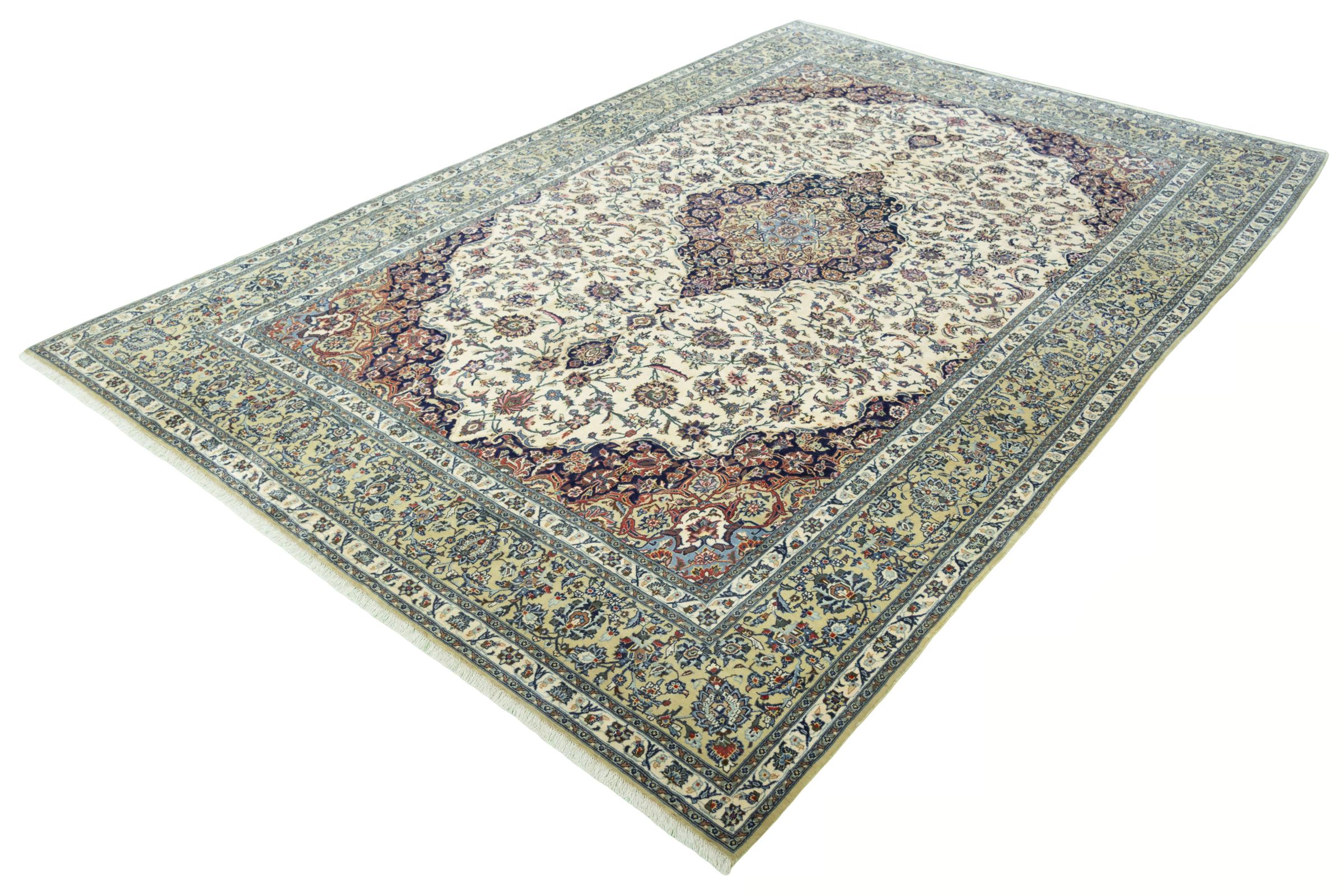 Αυτό το χαλί από το Kashan συγκρατείται από το πολύ παραδοσιακό και τυπικά περσικό σχέδιό του με όμορφα στολίδια. Τα χαλιά Kashan είναι πολύ δημοφιλή λόγω του εξαιρετικά κομψού σχεδιασμού τους. Αυτά τα χαλιά προέρχονται από το Χασάν, μια πόλη στον αρχαίο Δρόμο του Μεταξιού. Αυτό το χαλί έχει πλεγεί στο χέρι από υψηλής ποιότητας μαλλί προβάτου και θα είναι ένα μοναδικό θέαμα στο σπίτι σας.
