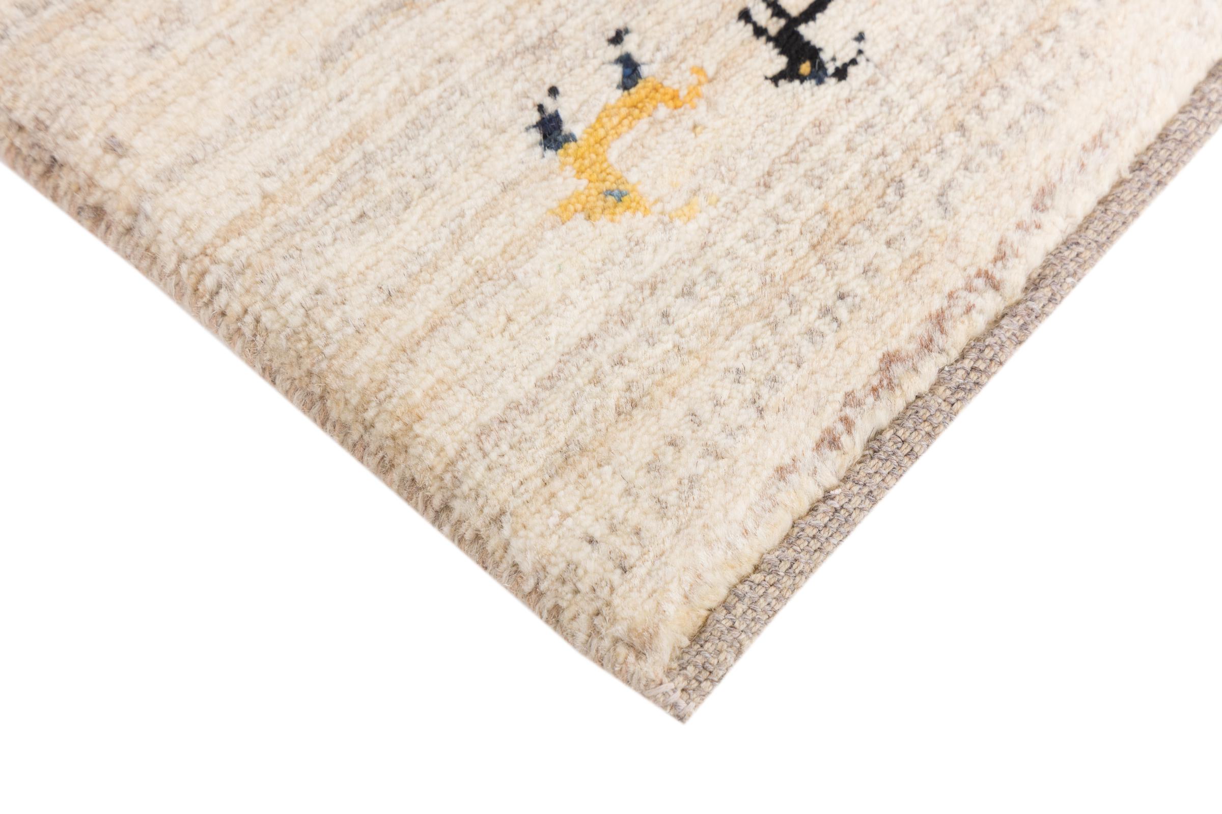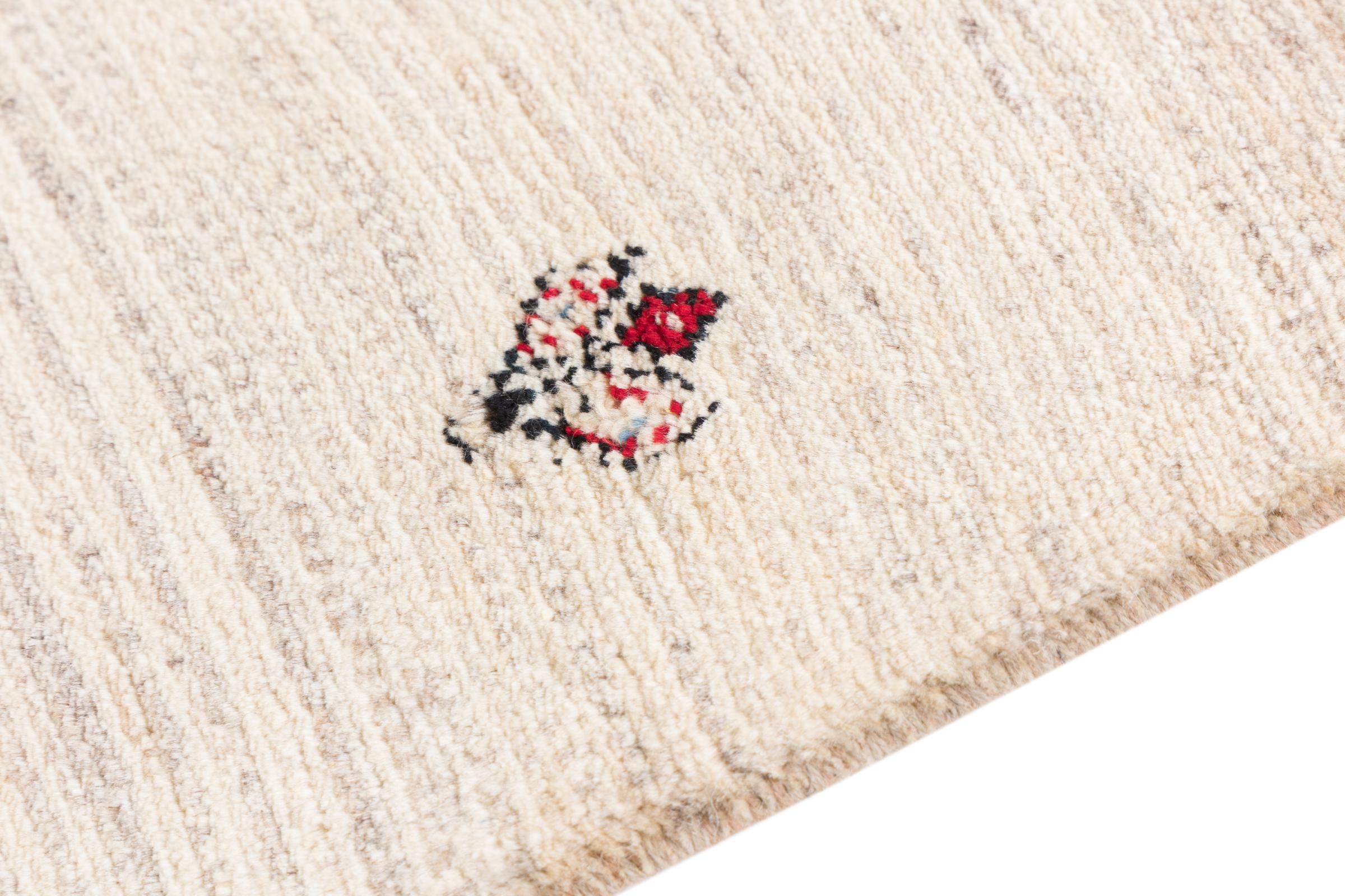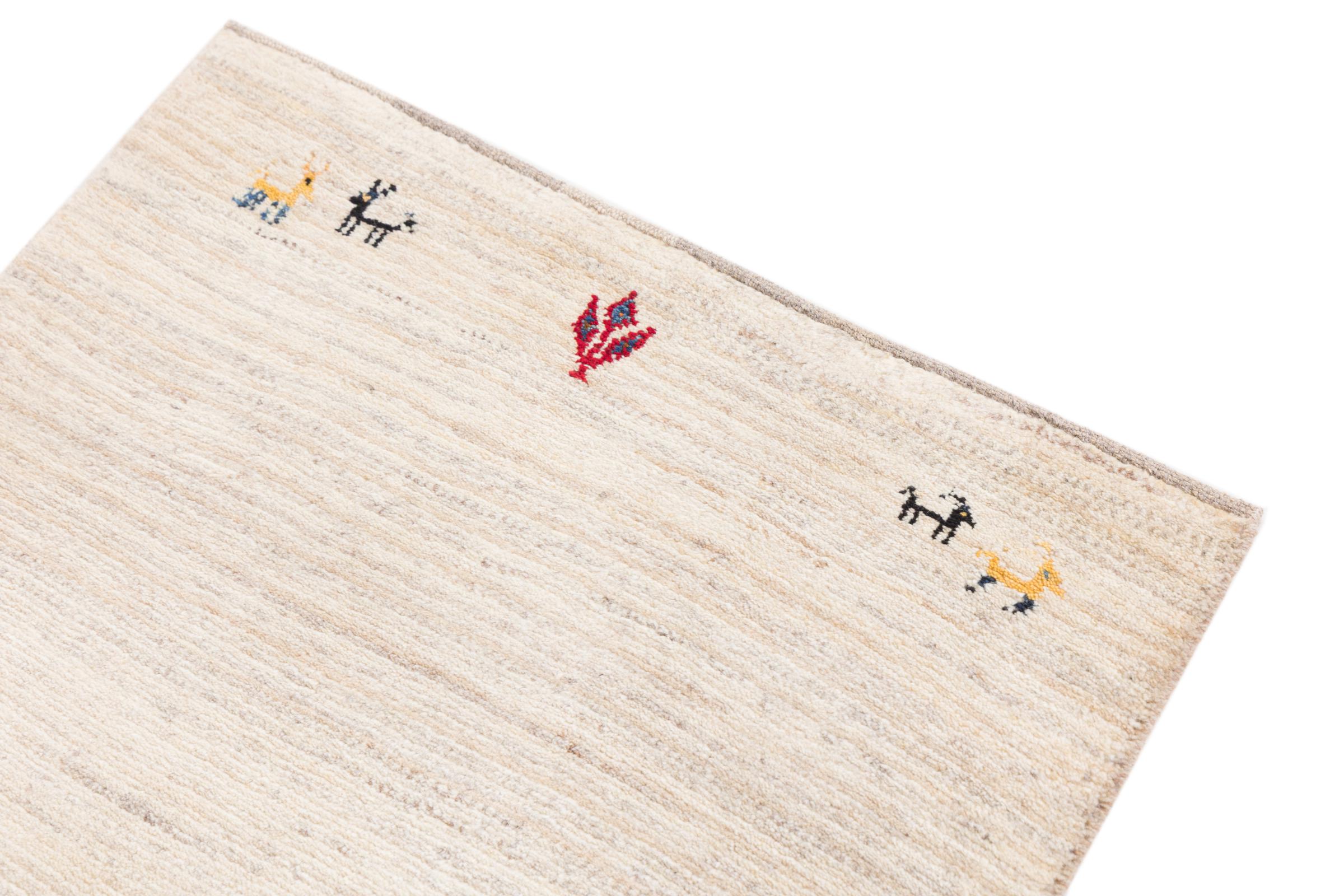 Αυτό το όμορφο χαλί είναι περσικό χαλί Gabbeh και είναι ένα από τα ποιοτικότερα χαλιά Gabbeh. Τα χαλιά δένονται από νομάδες ή ημινομάδες στο Ιράν σύμφωνα με την παραδοσιακή χειροτεχνία. Τα απλά μοτίβα και τα σχέδια είναι κυρίως εμπνευσμένα από το άμεσο περιβάλλον των νομάδων. Για παράδειγμα, καμήλες, δέντρα ή θάμνοι μπορούν να βρεθούν στα παραδοσιακά χαλιά. Τα περσικά χαλιά Gabbeh κατασκευάζονται από μαλλί από κοπάδια προβάτων που εκτρέφονται τοπικά. Ως εκ τούτου, το μαλλί ως επί το πλείστον εξακολουθεί να κλώνεται με το χέρι. Κάθε ένα από αυτά τα ανατολίτικα χαλιά ενσαρκώνει έναν μοναδικό χαρακτήρα αιώνων πολιτισμού.