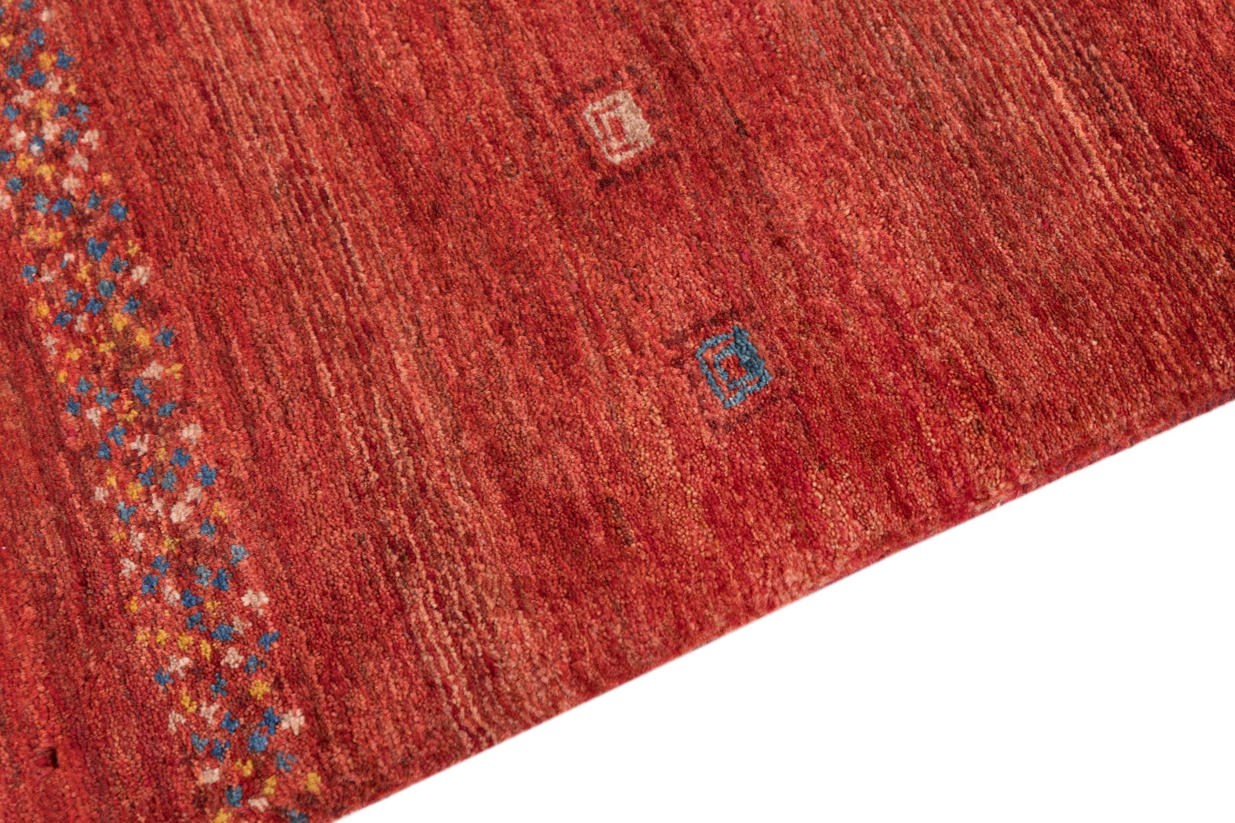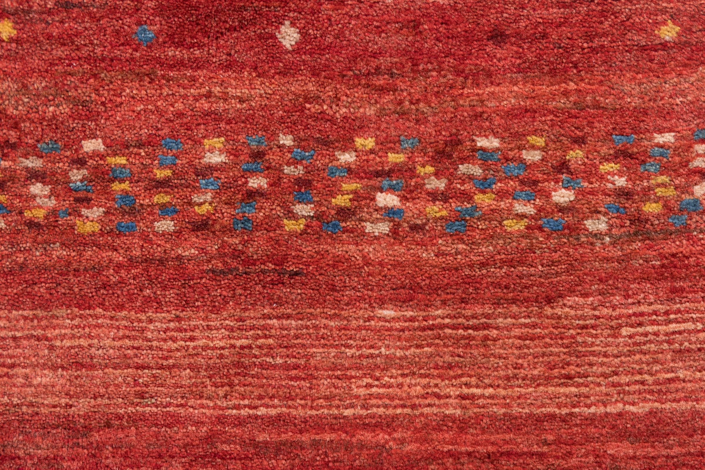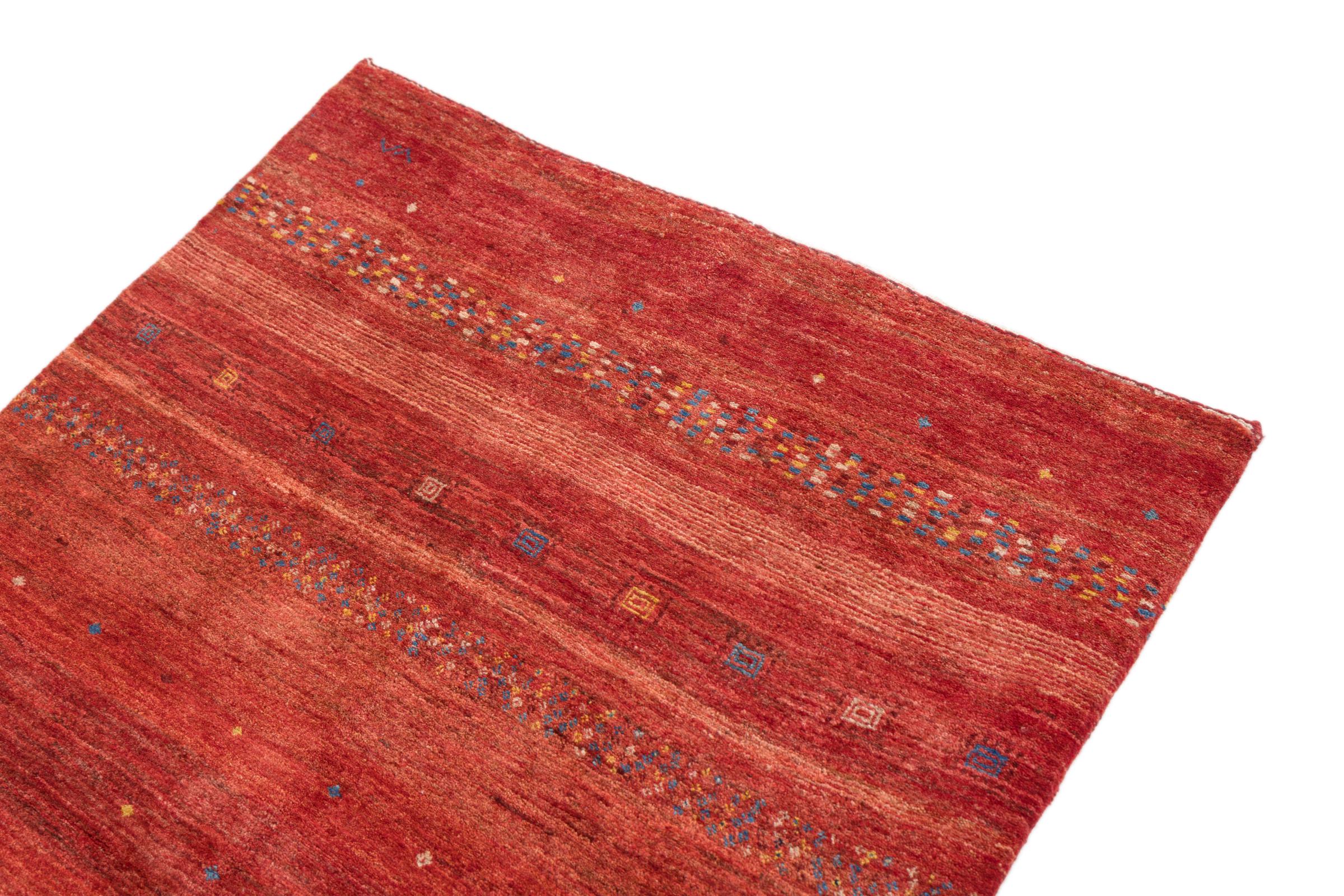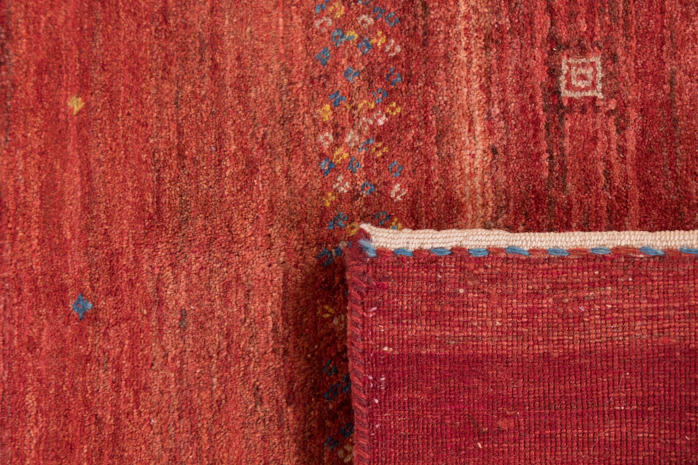 Αυτό το όμορφο χαλί είναι περσικό χαλί Gabbeh και είναι ένα από τα ποιοτικότερα χαλιά Gabbeh. Τα χαλιά δένονται από νομάδες ή ημινομάδες στο Ιράν σύμφωνα με την παραδοσιακή χειροτεχνία. Τα απλά μοτίβα και τα σχέδια είναι κυρίως εμπνευσμένα από το άμεσο περιβάλλον των νομάδων. Για παράδειγμα, καμήλες, δέντρα ή θάμνοι μπορούν να βρεθούν στα παραδοσιακά χαλιά. Τα περσικά χαλιά Gabbeh κατασκευάζονται από μαλλί από κοπάδια προβάτων που εκτρέφονται τοπικά. Ως εκ τούτου, το μαλλί ως επί το πλείστον εξακολουθεί να κλώνεται με το χέρι. Κάθε ένα από αυτά τα ανατολίτικα χαλιά ενσαρκώνει έναν μοναδικό χαρακτήρα αιώνων πολιτισμού.
