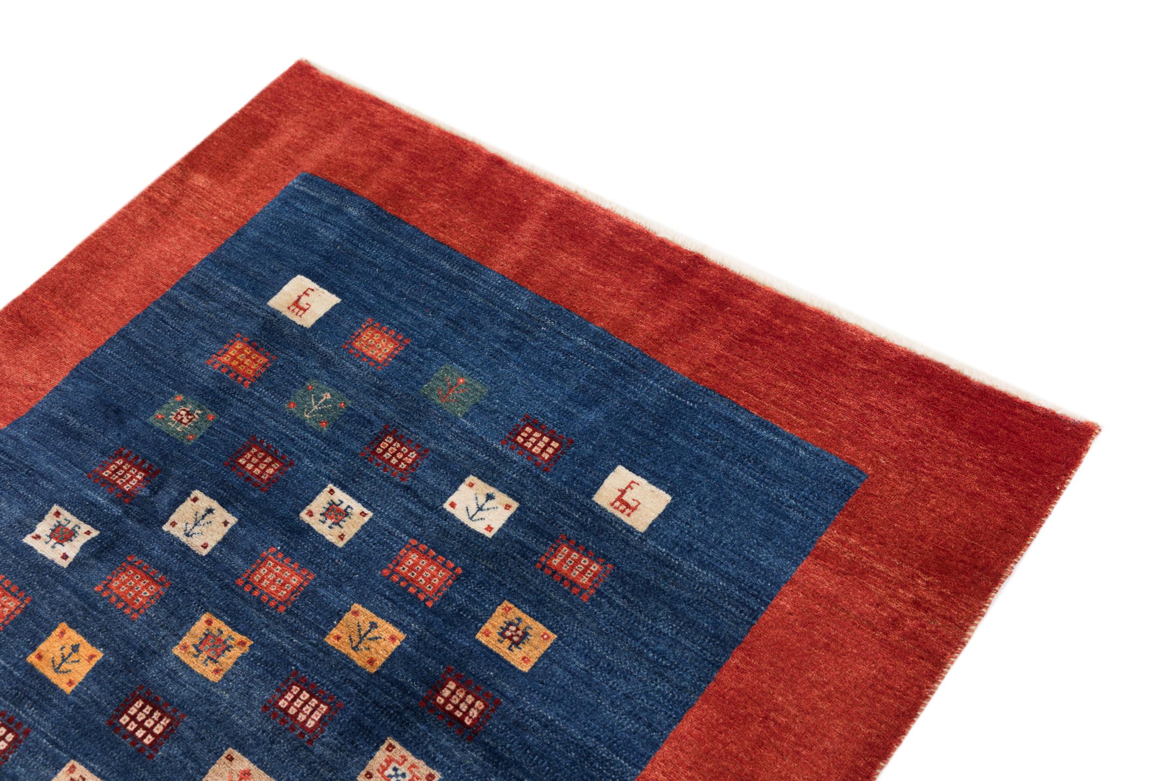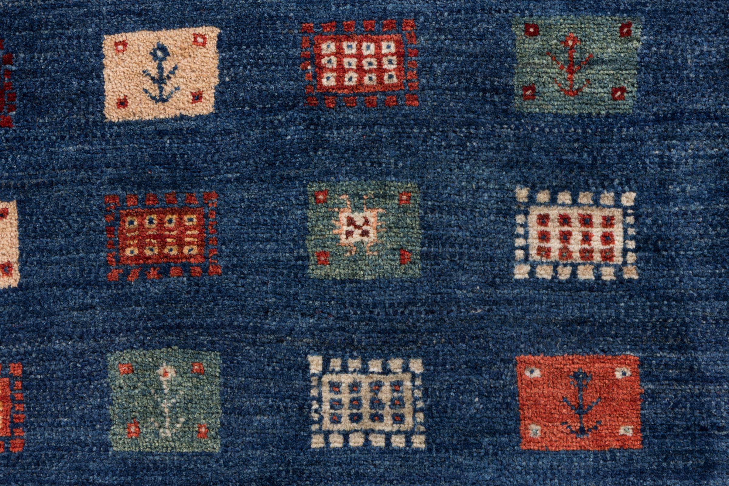 Αυτό το όμορφο χαλί είναι περσικό χαλί Gabbeh και είναι ένα από τα ποιοτικότερα χαλιά Gabbeh. Τα χαλιά δένονται από νομάδες ή ημινομάδες στο Ιράν σύμφωνα με την παραδοσιακή χειροτεχνία. Τα απλά μοτίβα και τα σχέδια είναι κυρίως εμπνευσμένα από το άμεσο περιβάλλον των νομάδων. Για παράδειγμα, καμήλες, δέντρα ή θάμνοι μπορούν να βρεθούν στα παραδοσιακά χαλιά. Τα περσικά χαλιά Gabbeh κατασκευάζονται από μαλλί από κοπάδια προβάτων που εκτρέφονται τοπικά. Ως εκ τούτου, το μαλλί ως επί το πλείστον εξακολουθεί να κλώνεται με το χέρι. Κάθε ένα από αυτά τα ανατολίτικα χαλιά ενσαρκώνει έναν μοναδικό χαρακτήρα αιώνων πολιτισμού.