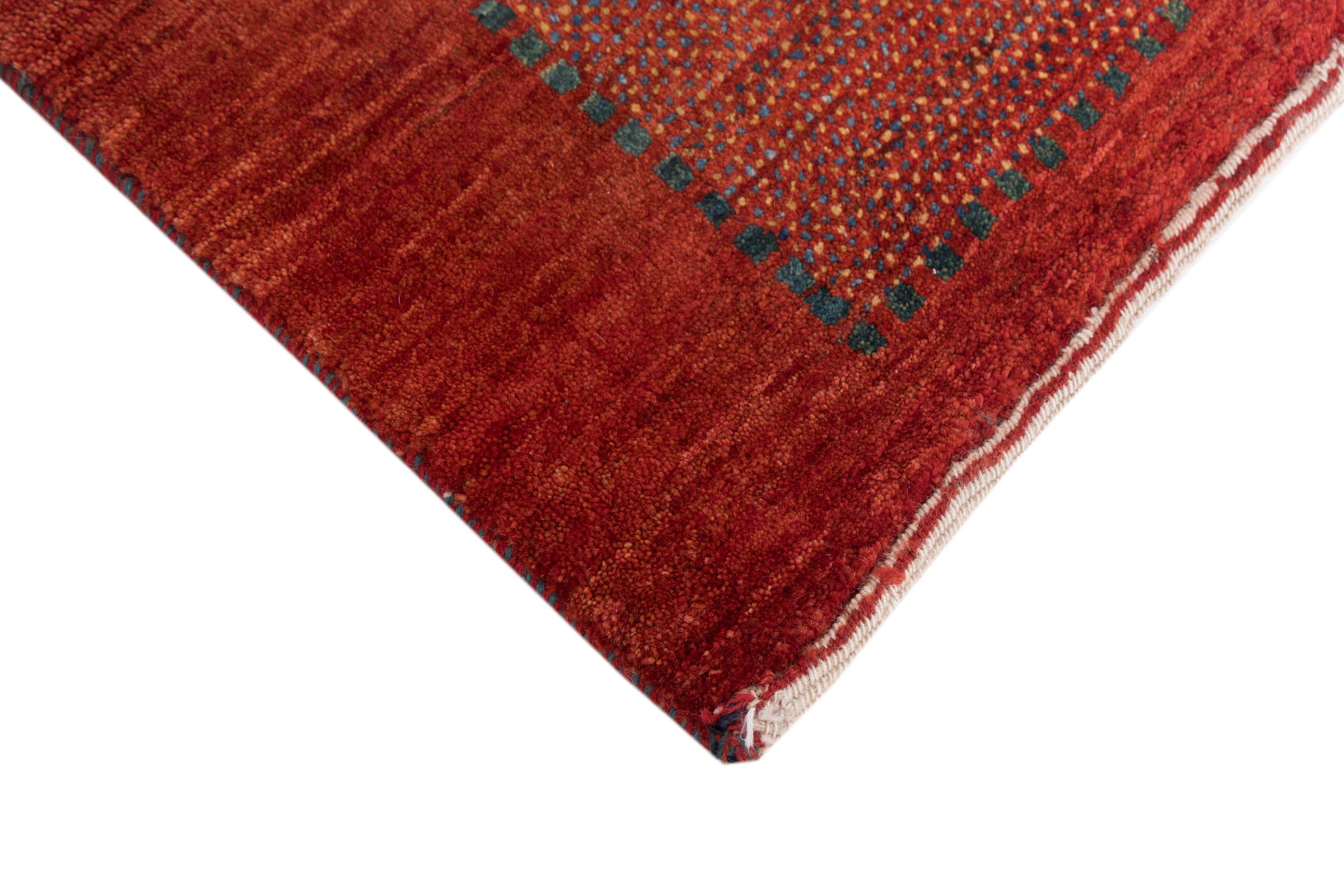 Αυτό το όμορφο χαλί είναι περσικό χαλί Gabbeh και είναι ένα από τα ποιοτικότερα χαλιά Gabbeh. Τα χαλιά δένονται από νομάδες ή ημινομάδες στο Ιράν σύμφωνα με την παραδοσιακή χειροτεχνία. Τα απλά μοτίβα και τα σχέδια είναι κυρίως εμπνευσμένα από το άμεσο περιβάλλον των νομάδων. Για παράδειγμα, καμήλες, δέντρα ή θάμνοι μπορούν να βρεθούν στα παραδοσιακά χαλιά. Τα περσικά χαλιά Gabbeh κατασκευάζονται από μαλλί από κοπάδια προβάτων που εκτρέφονται τοπικά. Ως εκ τούτου, το μαλλί ως επί το πλείστον εξακολουθεί να κλώνεται με το χέρι. Κάθε ένα από αυτά τα ανατολίτικα χαλιά ενσαρκώνει έναν μοναδικό χαρακτήρα αιώνων πολιτισμού.