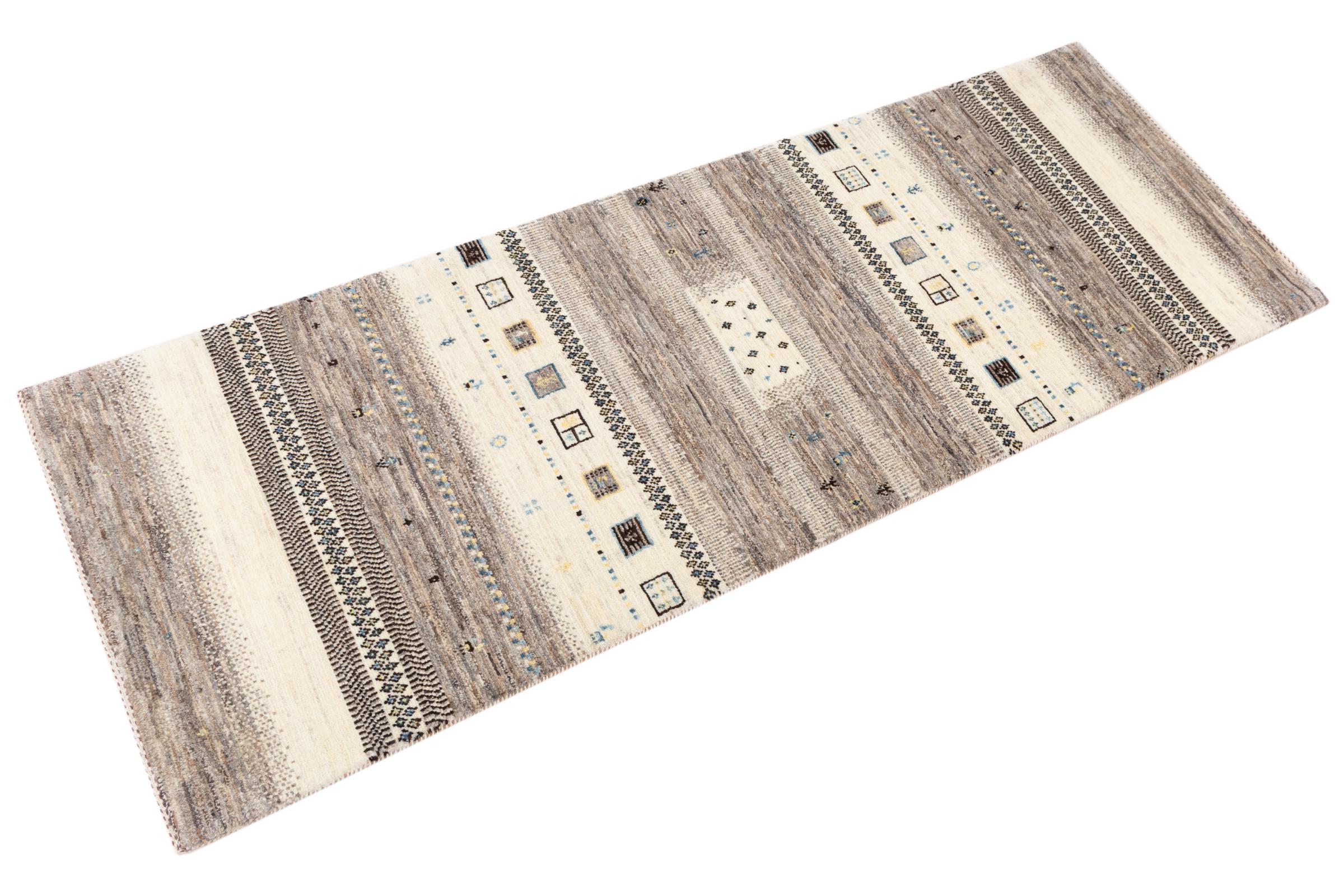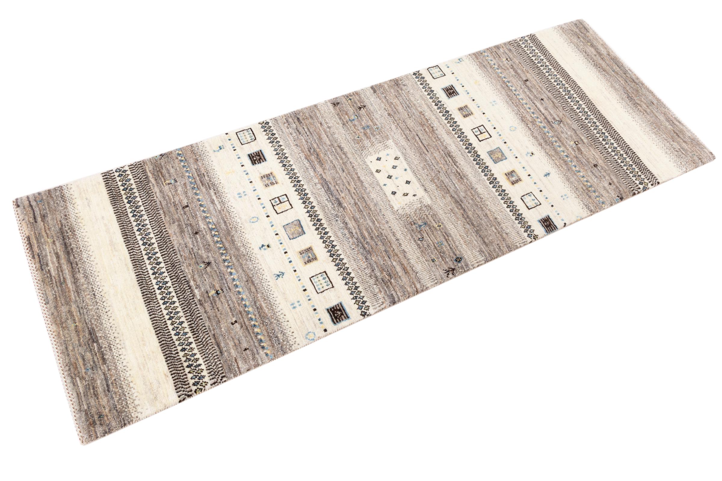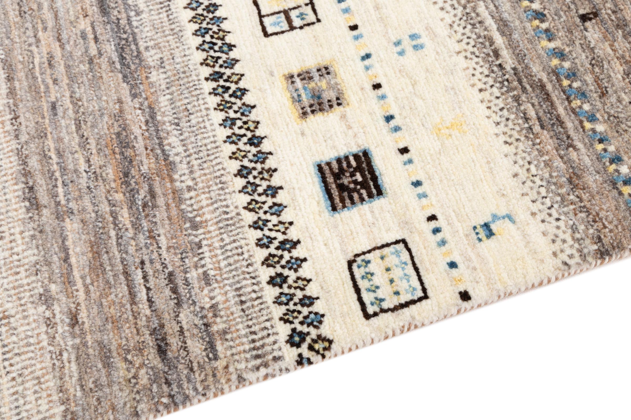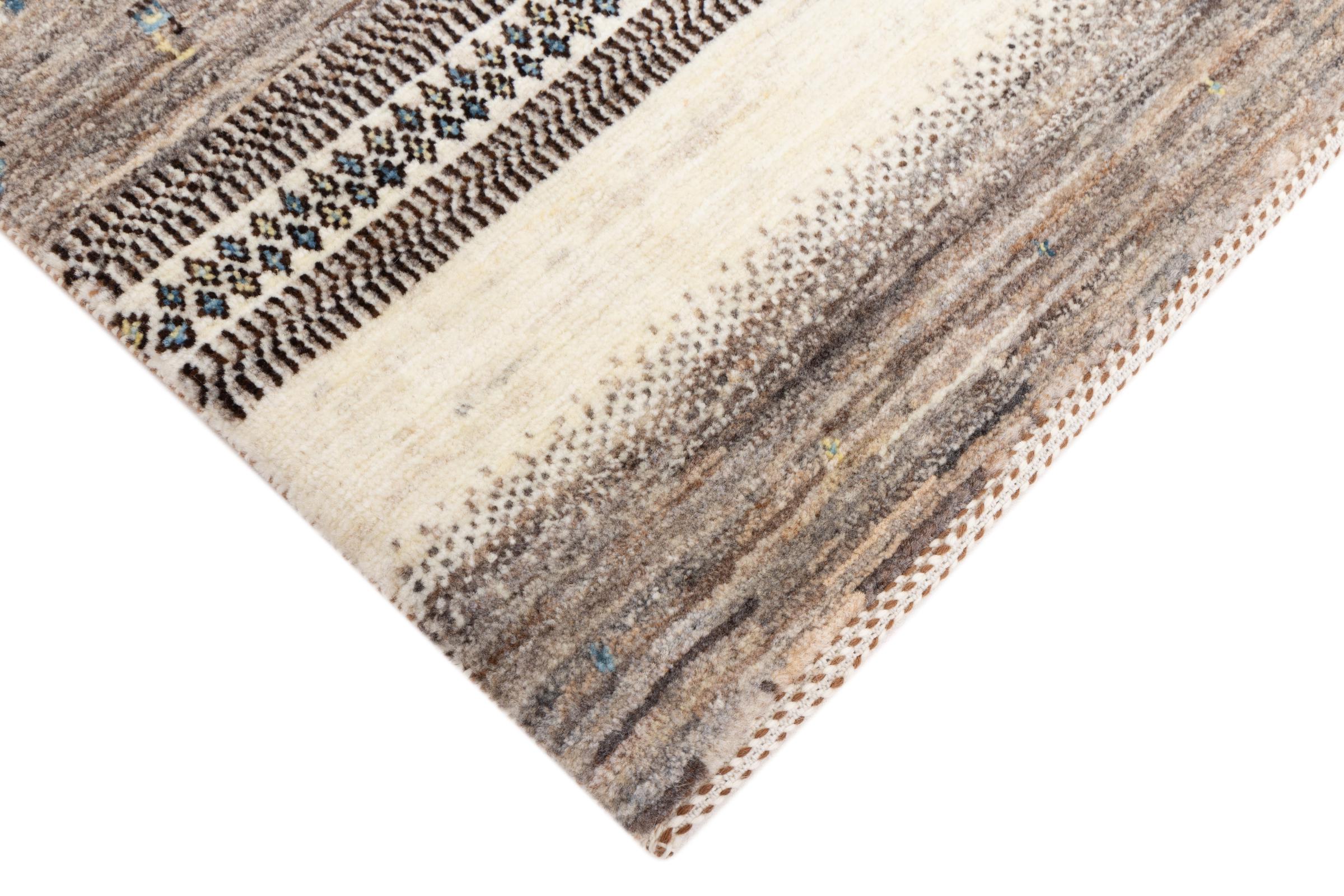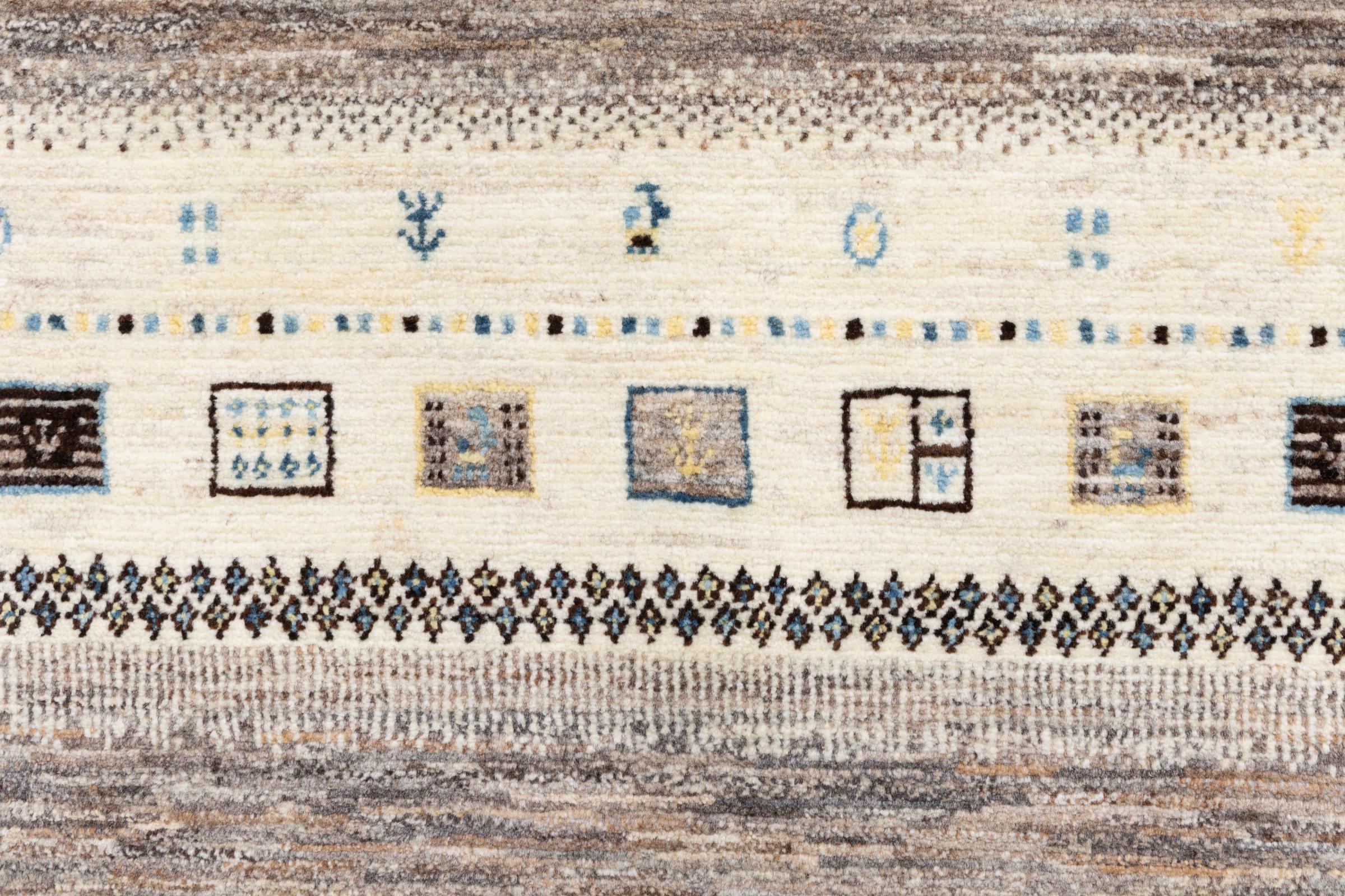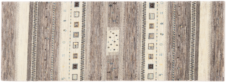 Αυτό το όμορφο χαλί είναι περσικό χαλί Gabbeh και είναι ένα από τα ποιοτικότερα χαλιά Gabbeh. Τα χαλιά δένονται από νομάδες ή ημινομάδες στο Ιράν σύμφωνα με την παραδοσιακή χειροτεχνία. Τα απλά μοτίβα και τα σχέδια είναι κυρίως εμπνευσμένα από το άμεσο περιβάλλον των νομάδων. Για παράδειγμα, καμήλες, δέντρα ή θάμνοι μπορούν να βρεθούν στα παραδοσιακά χαλιά. Τα περσικά χαλιά Gabbeh κατασκευάζονται από μαλλί από κοπάδια προβάτων που εκτρέφονται τοπικά. Ως εκ τούτου, το μαλλί ως επί το πλείστον εξακολουθεί να κλώνεται με το χέρι. Κάθε ένα από αυτά τα ανατολίτικα χαλιά ενσαρκώνει έναν μοναδικό χαρακτήρα αιώνων πολιτισμού.