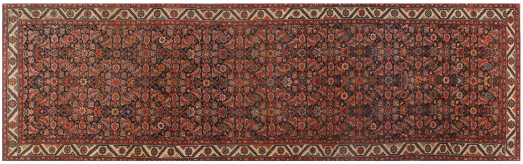 Νούμερο χαλιού: 310002008625210 Μέγεθος: 381x111 cm Πάχος: περίπου 12 mm κόμπους: 200 000 - 250 000 / m² Επεξεργασία: Οι κόμποι έγιναν με το χέρι σορός: Με Μαλλί κλωσμένο στο χέρι στημόνι: Μαλλί Κατάσταση / διατήρηση τέλειο Καταγωγή: Ιράν / Iran Ηλικία: αντίκες, παλαιότερα από 80 χρόνια Βάρος: περίπου 15 kg Στο απόθεμα: Mοναδικός - Μόνο 1 σε απόθεμα