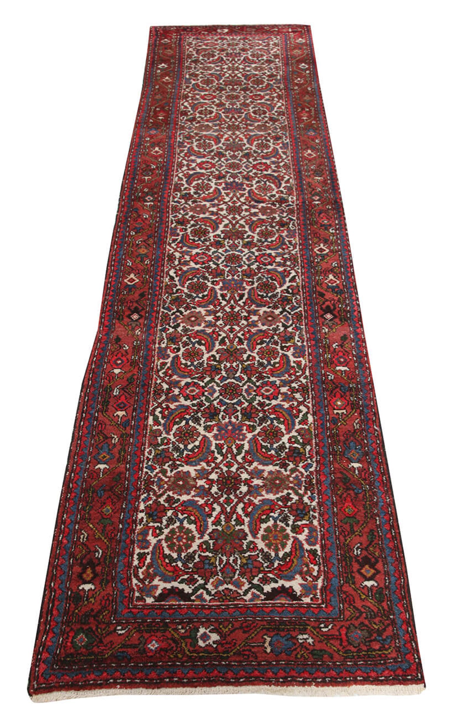 Νούμερο χαλιού: 310019005933819 Μέγεθος: 381x86 cm Πάχος: περίπου 12 mm κόμπους: 200 000 - 250 000 / m² Επεξεργασία: Οι κόμποι έγιναν με το χέρι σορός: Με Μαλλί κλωσμένο στο χέρι στημόνι: Μαλλί Κατάσταση / διατήρηση τέλειο Καταγωγή: Ιράν / Iran Ηλικία: αντίκες, παλαιότερα από 80 χρόνια Βάρος: περίπου 11 kg Στο απόθεμα: Mοναδικός - Μόνο 1 σε απόθεμα