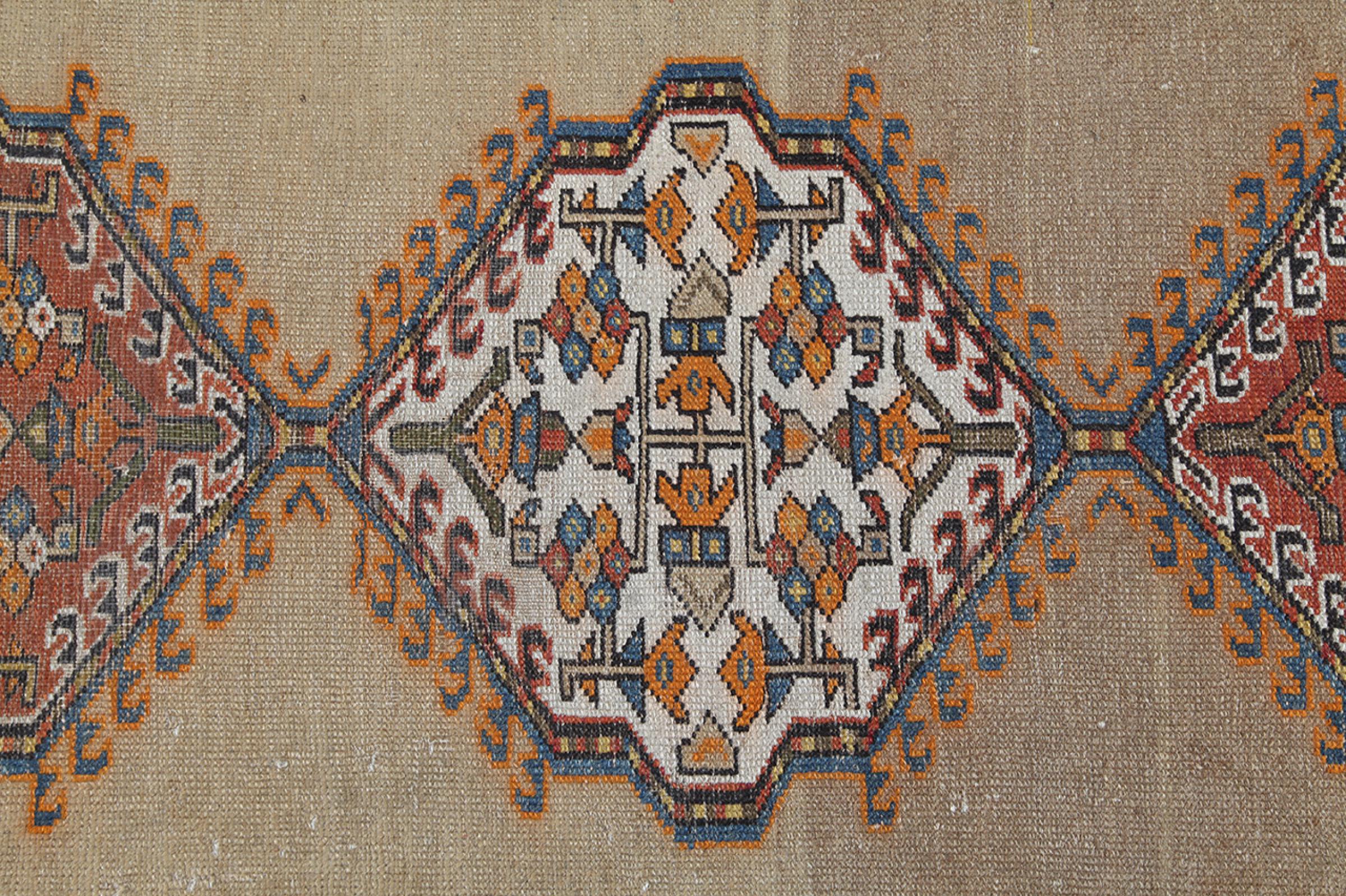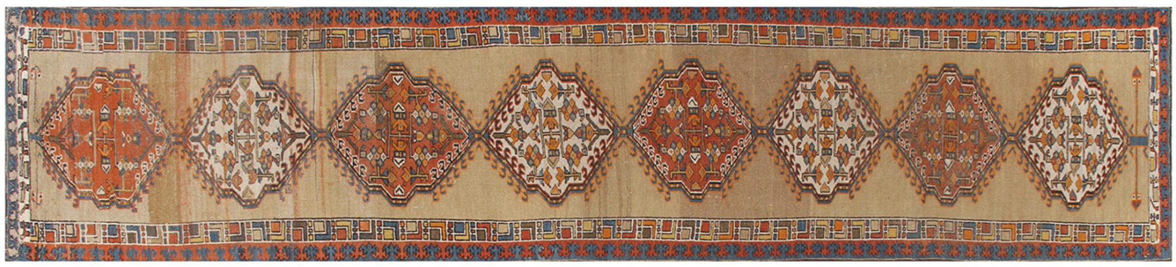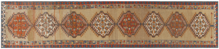 Νούμερο χαλιού: 310142005539143 Μέγεθος: 459x94 cm Πάχος: περίπου 12 mm κόμπους: 200 000 - 250 000 / m² Επεξεργασία: Οι κόμποι έγιναν με το χέρι σορός: Με Μαλλί κλωσμένο στο χέρι στημόνι: Μαλλί Κατάσταση / διατήρηση τέλειο Καταγωγή: Ιράν / Iran Ηλικία: αντίκες, παλαιότερα από 80 χρόνια Βάρος: περίπου 15 kg Στο απόθεμα: Mοναδικός - Μόνο 1 σε απόθεμα