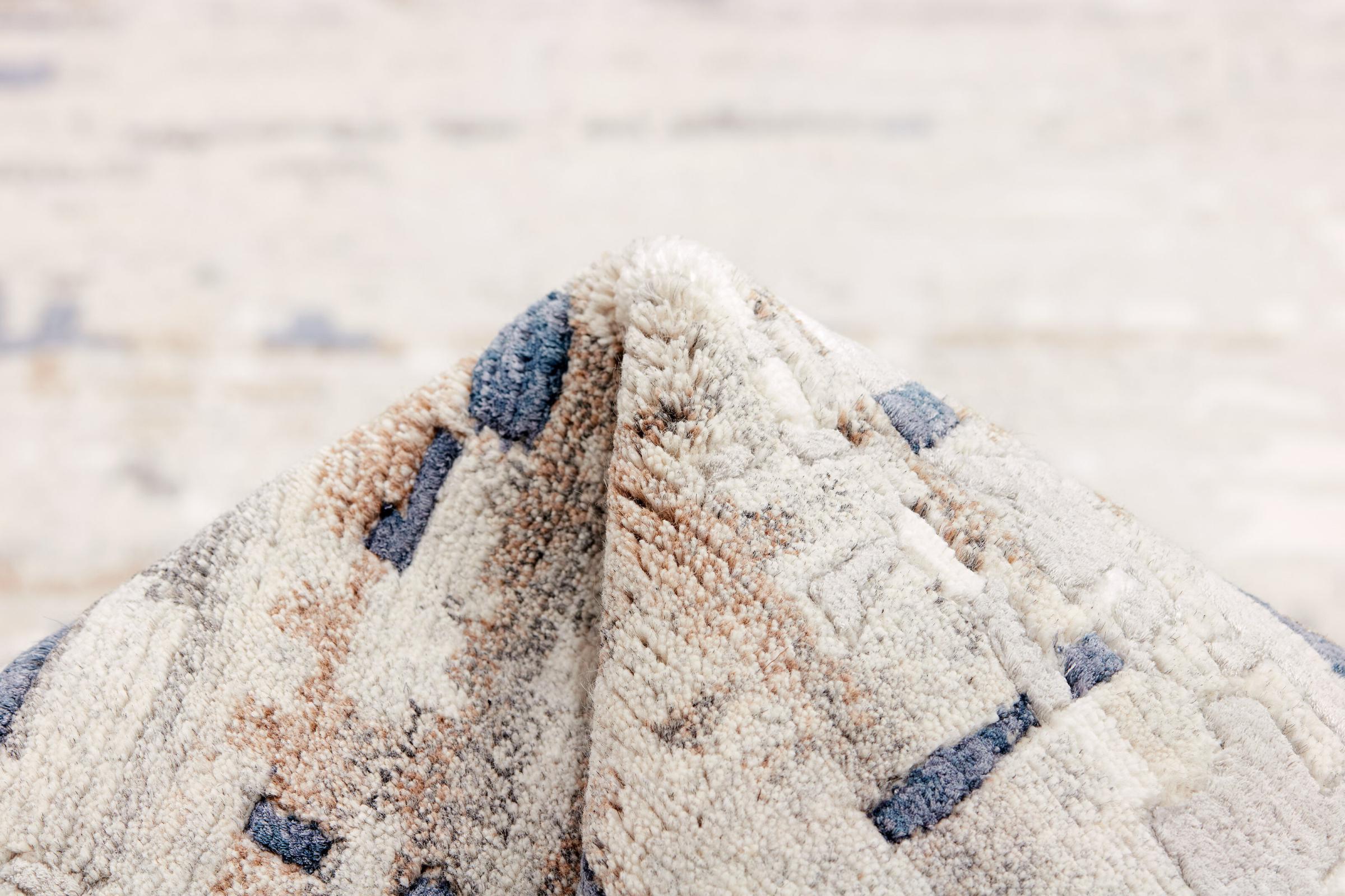 Το μαλλί είναι ένα φυσικό υλικό που έχει σημαντικές θετικές ιδιότητες στην καθημερινή ζωή. Είναι εξαιρετικά ανθεκτικό και αντέχει εύκολα στην καθημερινή φθορά. Με την κατάλληλη φροντίδα, μπορεί επίσης να ζήσει για πολλές δεκαετίες χωρίς να δείχνει σημάδια ηλικίας. Το φυσικό μαλλί είναι επίσης απωθητικό ρύπων με τη δική του περιεκτικότητα σε λίπος, που το προστατεύει από ξένα σώματα όπως η υγρασία. Αυτό το χαλί είναι επίσης κατασκευασμένο από βισκόζη υψηλής ποιότητας, η οποία είναι μια χειροποίητη υφαντική ίνα βασισμένη σε φυσικά υλικά. Αυτά περιλαμβάνουν, για παράδειγμα, το βαμβάκι και την κυτταρίνη.