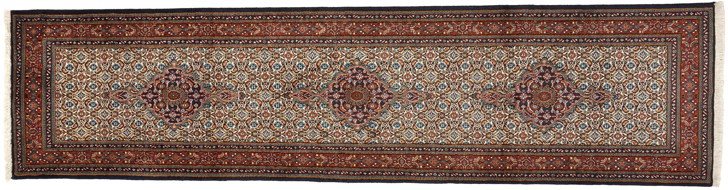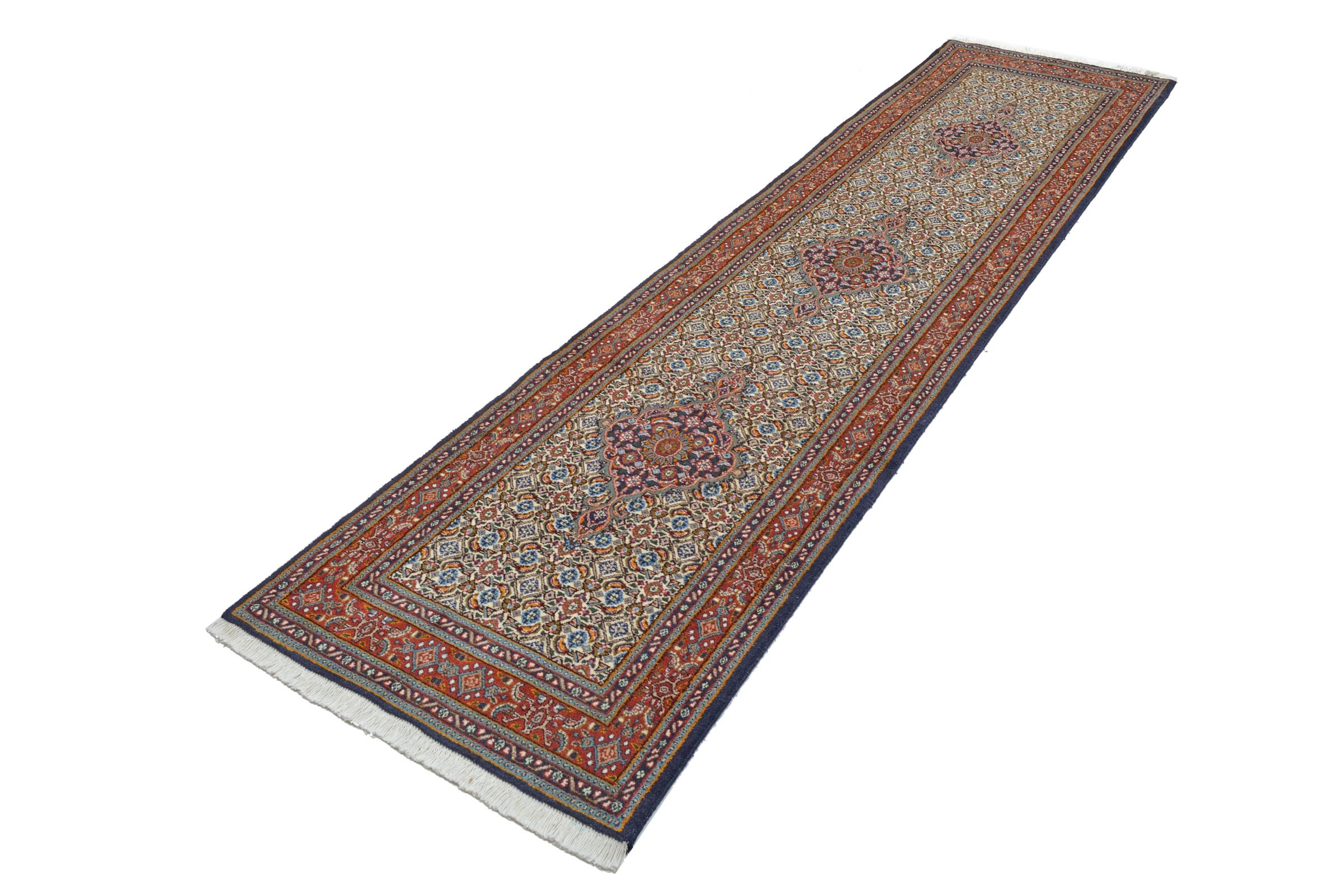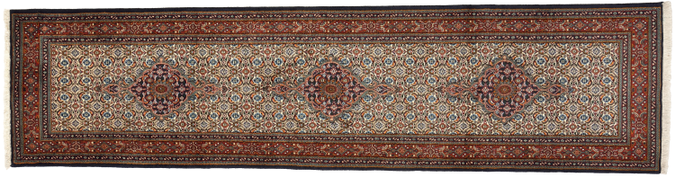 Αυτό το χαλί από το Moud, μια πόλη 300 χλμ νότια του Mashhad, είναι εντυπωσιακό με την πρώτη ματιά. Το τυπικό σχέδιο Herati ή ο σχεδιασμός του κήπου εκτιμάται από τους γνώστες και τους λάτρεις των πραγματικών περσικών χαλιών. Αν ψάχνετε για ένα χειροποίητο χαλί εξαιρετικής ποιότητας με πολύ μοναδικό και ξεχωριστό σχέδιο, αυτός ο τύπος χαλιού είναι απολύτως κατάλληλος για εσάς.