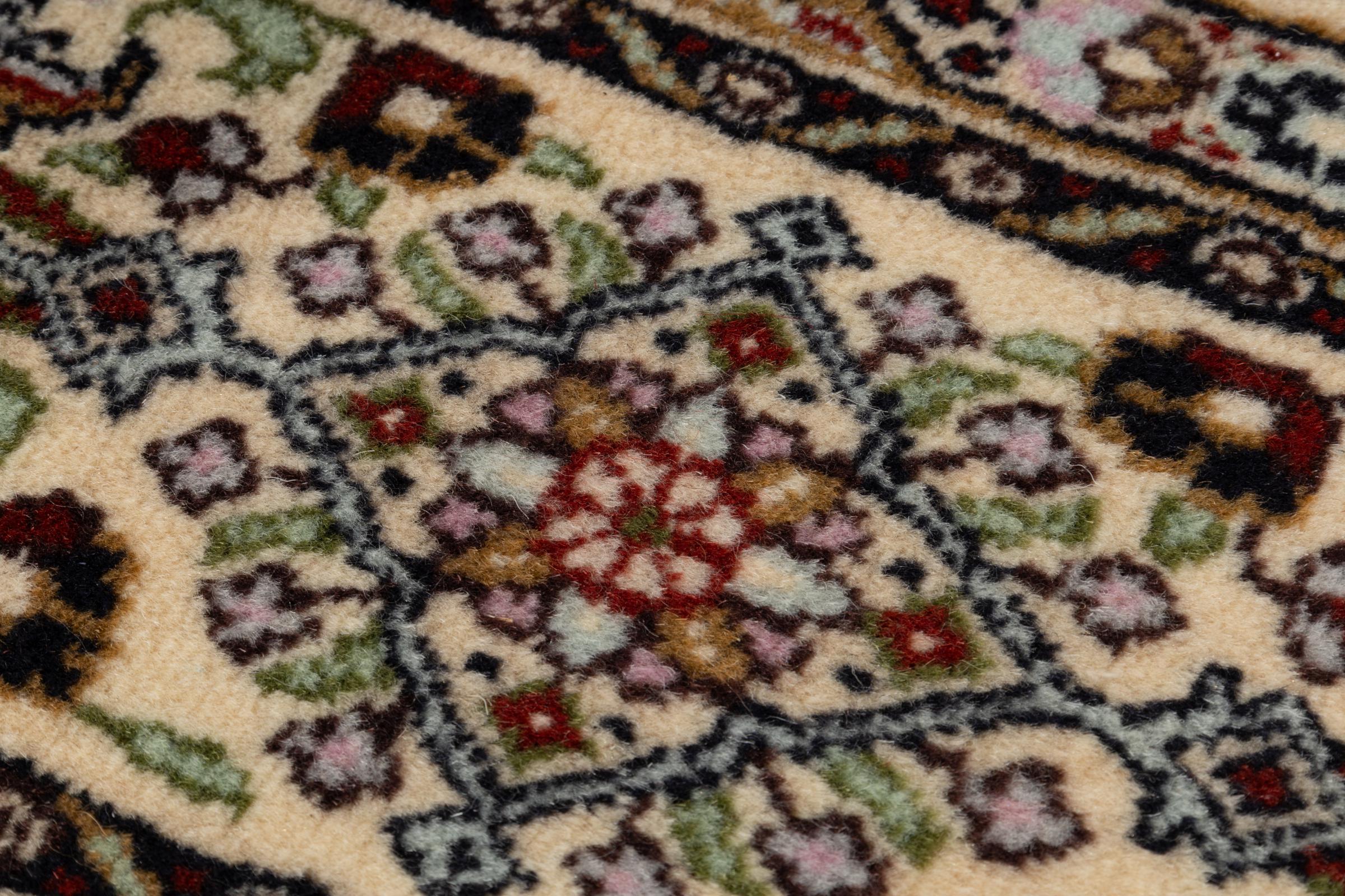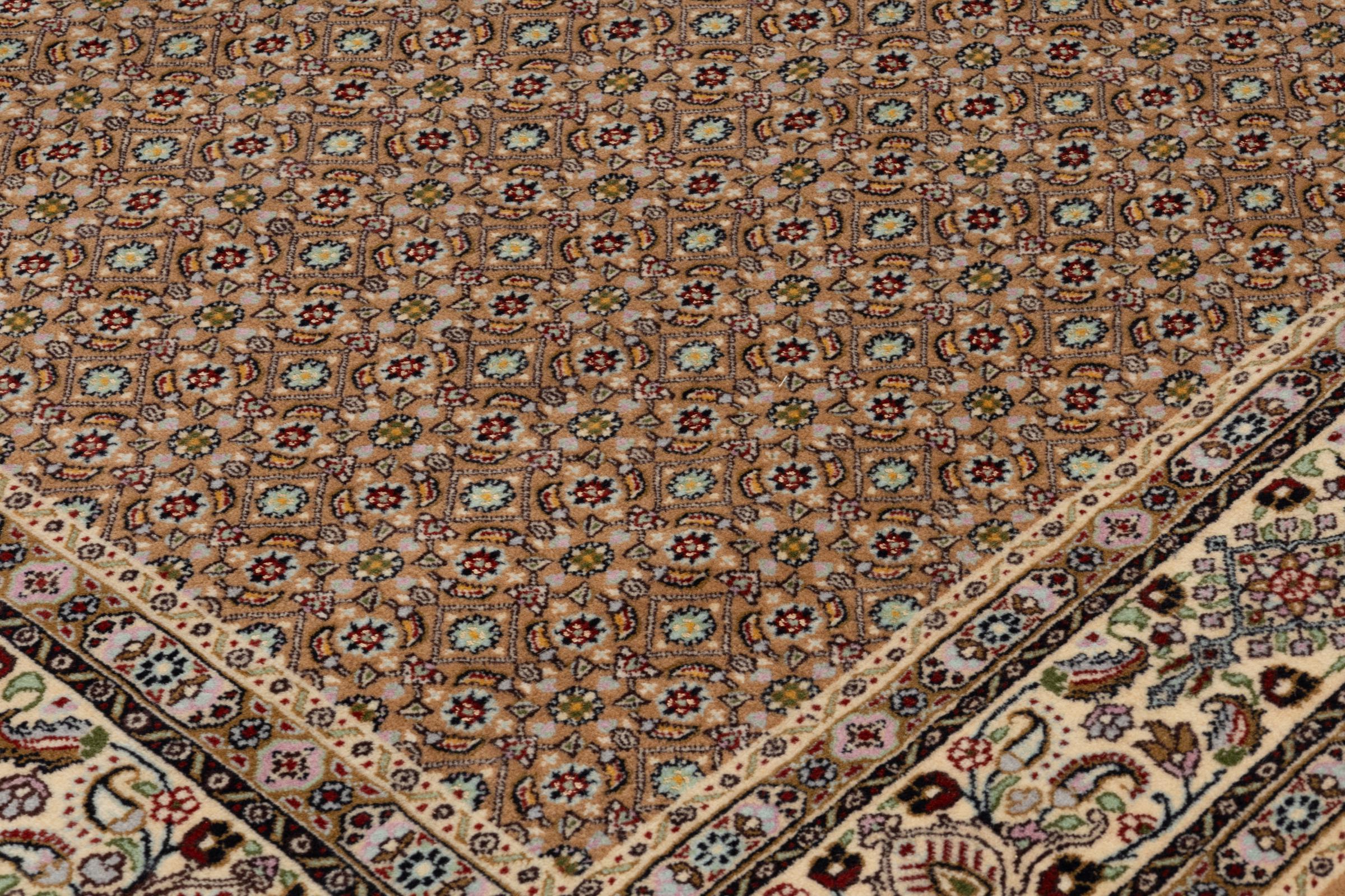 Αυτό το χαλί από το Moud, μια πόλη 300 χλμ νότια του Mashhad, είναι εντυπωσιακό με την πρώτη ματιά. Το τυπικό σχέδιο Herati ή ο σχεδιασμός του κήπου εκτιμάται από τους γνώστες και τους λάτρεις των πραγματικών περσικών χαλιών. Αν ψάχνετε για ένα χειροποίητο χαλί εξαιρετικής ποιότητας με πολύ μοναδικό και ξεχωριστό σχέδιο, αυτός ο τύπος χαλιού είναι απολύτως κατάλληλος για εσάς.