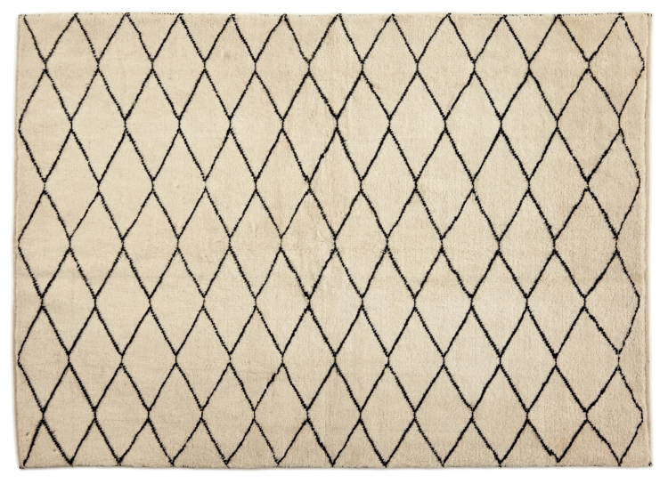 Αυτό το χαλί είναι κατασκευασμένο από χειροποίητο μαλλί προβάτου υψηλής ποιότητας. Στο Ιράν (πρώην Περσία), στο Αφγανιστάν και στο Πακιστάν ειδικότερα, το μαλλί εξακολουθεί να κλίνεται με το χέρι πριν αρχίσει ο πραγματικός κόμπος του χαλιού. Το μαλλί έχει αποδειχθεί ως φυσικό και εξαιρετικά ανθεκτικό υλικό στο πέρασμα των αιώνων. Μεταξύ άλλων, έχει ρυπογόνες και θερμομονωτικές ιδιότητες. Ταυτόχρονα, το μαλλί είναι ασύγκριτα απαλό και έχει φυσική γυαλάδα.