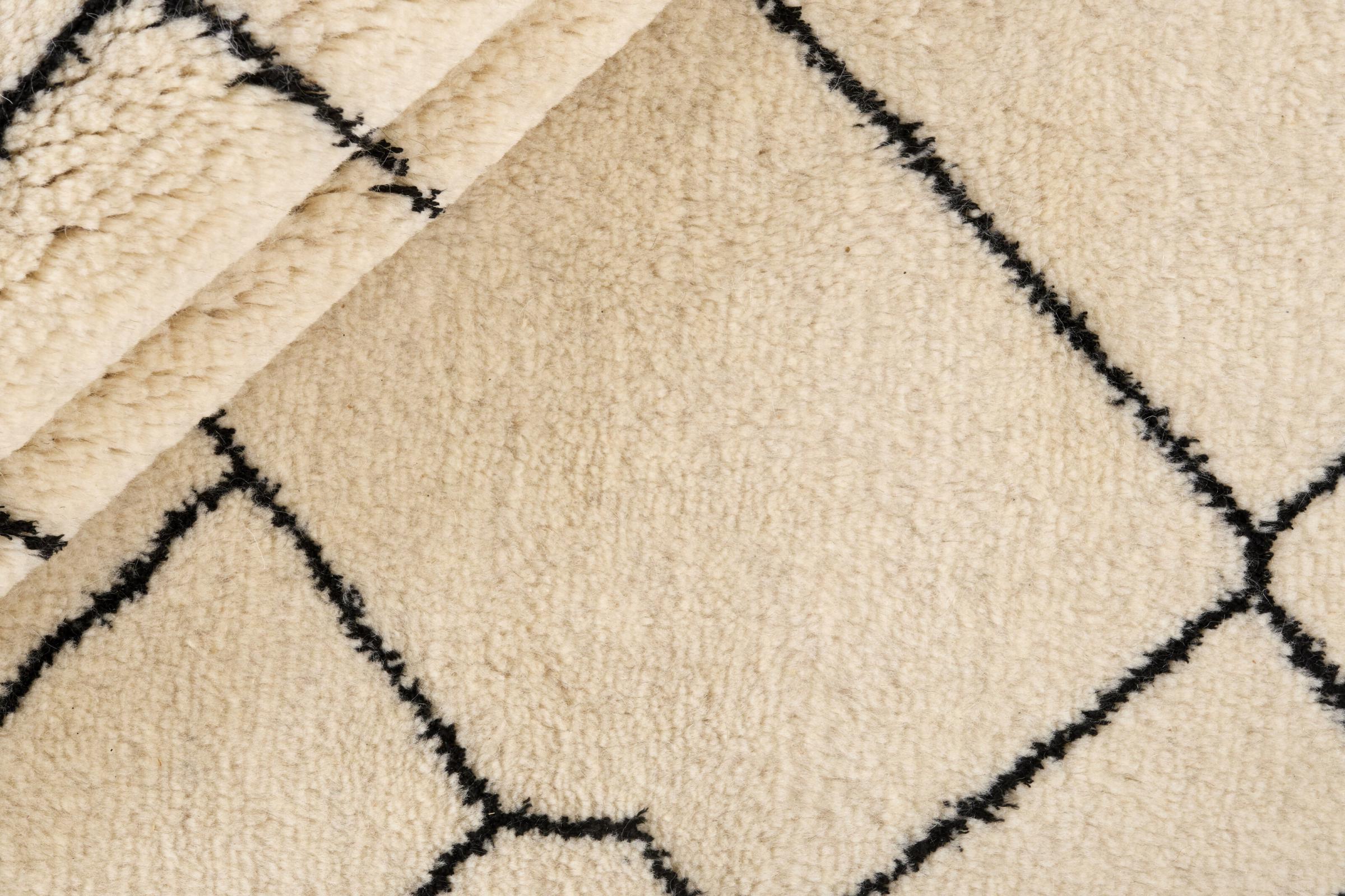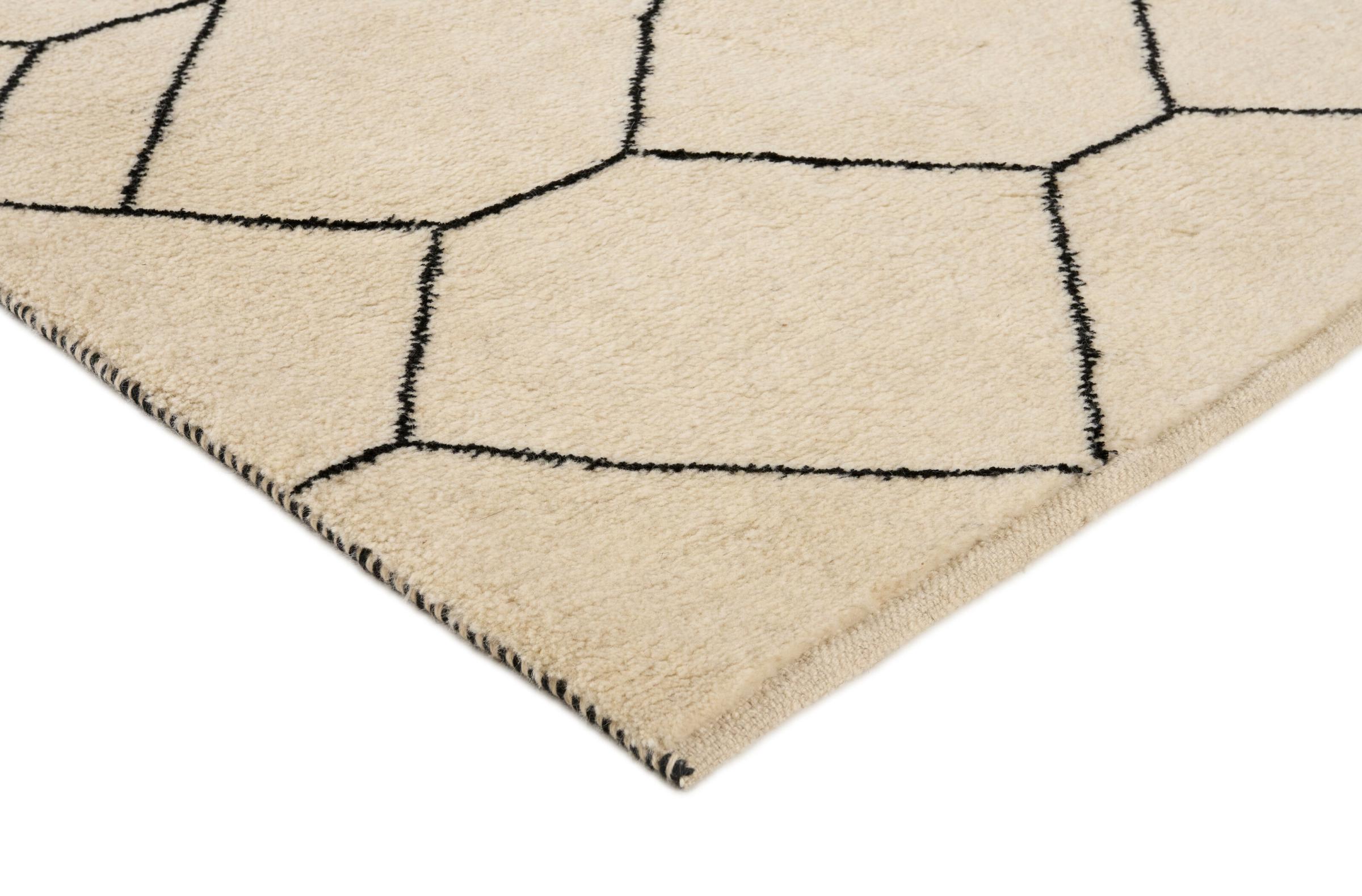 Αυτό το χαλί Naturesene είναι ένα βερβερικό χαλί με ιδιαίτερα σφιχτούς κόμπους σε μοντέρνο σχέδιο. Έγινε χειροποίητος κόμπος από πολύ υψηλής ποιότητας φυσικό μαλλί/κλωσμένο στο χέρι/με μετάξι. Γύρω στα 20 mm, το πέλος του είναι από τα πολύ ψηλά και είναι ευχάριστα απαλό και αντιολισθητικό.