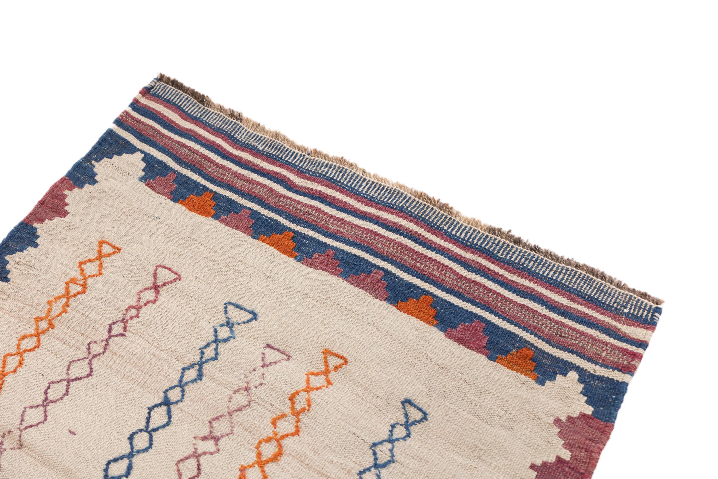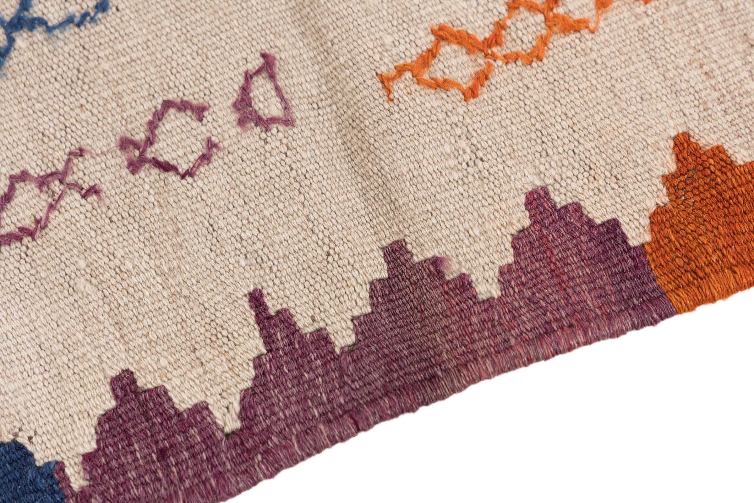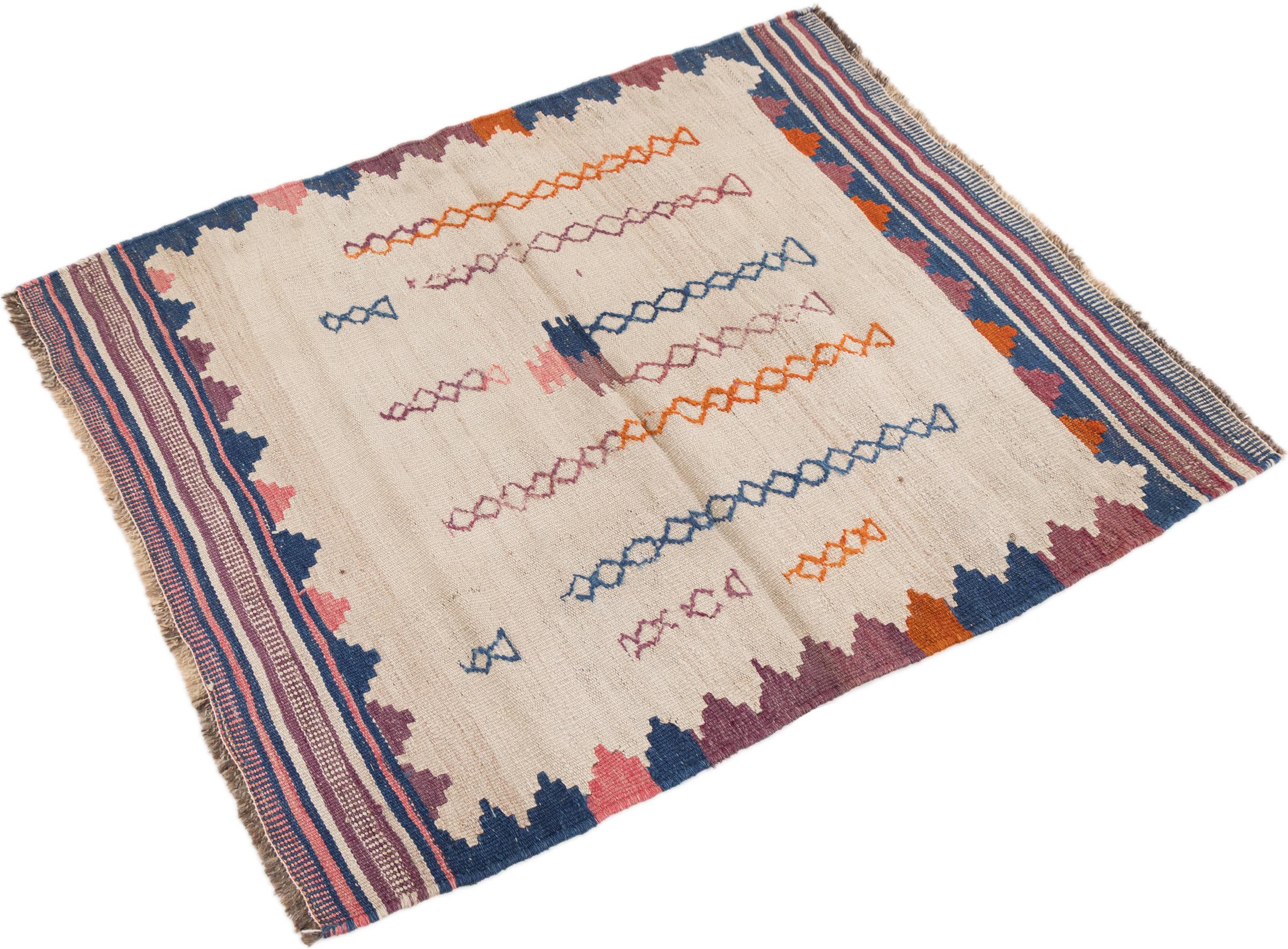 Αυτό το χαλί είναι χειροποίητο ως επίπεδη ύφανση σε αργαλειό. Τα επίπεδα ύφανση είναι χαλιά που δεν έχουν πέλος. Όπως υπόσχεται το όνομα, αυτά τα χαλιά είναι υφαντά και όχι δεμένα με κόμπους. Αυτό έχει ως αποτέλεσμα ένα επίπεδο χαλί με ανάγλυφη επιφάνεια. Τα flatweaves δεν είναι τόσο μαλακά και συνήθως πιο λεπτά από τα χαλιά με κόμπους. Ταυτόχρονα, είναι πολύ λιγότερο πολύπλοκα στην κατασκευή τους και μπορούν συνήθως να τοποθετηθούν και από τις δύο πλευρές (εμπρός και πίσω). Τα σχέδια τους είναι συνήθως γεωμετρικά, κάτι που οφείλεται στην ύφανση.