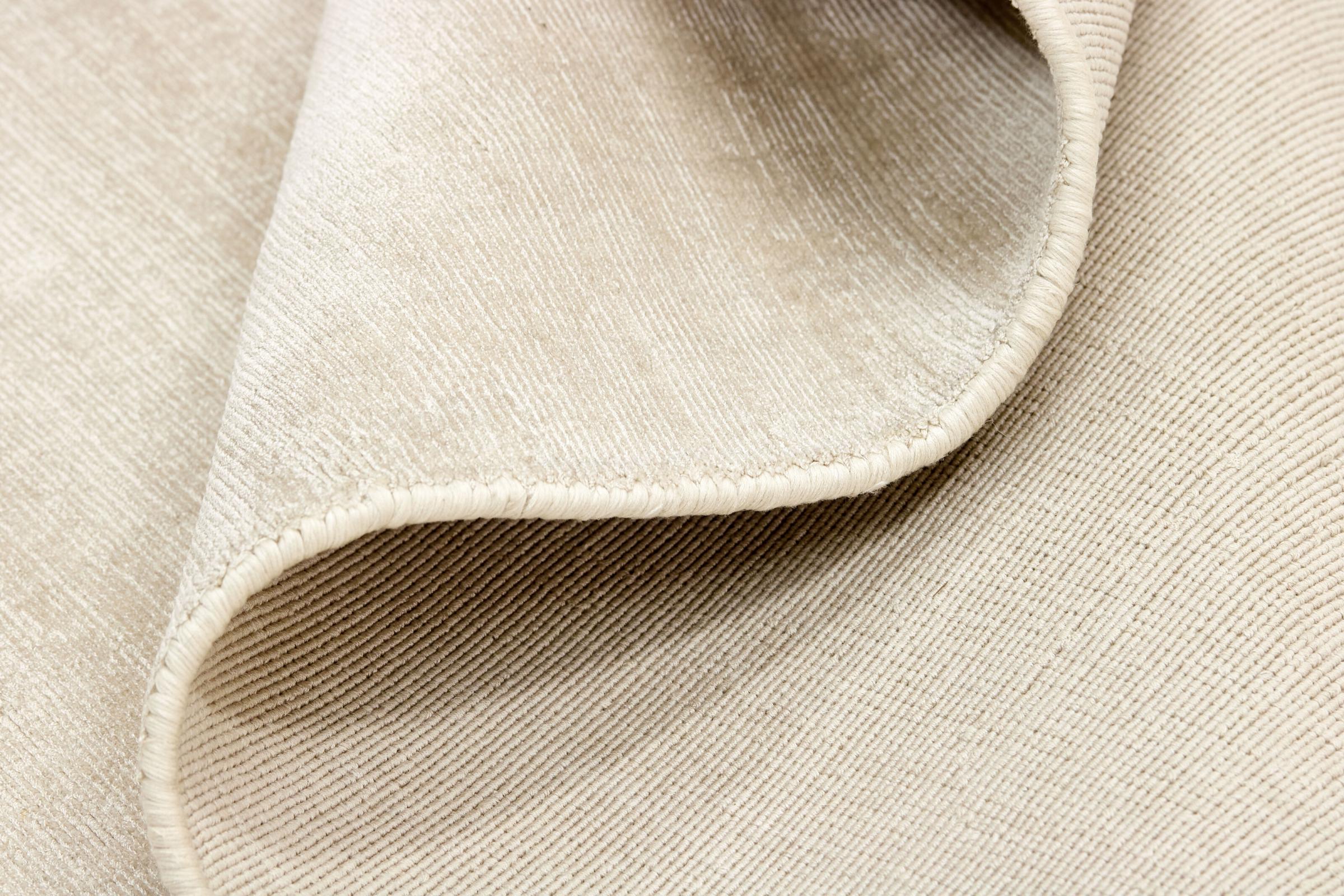 Αυτό το χαλί είναι κατασκευασμένο από υψηλής ποιότητας βισκόζη, η οποία είναι μια χειροποίητη υφαντική ίνα βασισμένη σε φυσικά υλικά. Αυτά περιλαμβάνουν, για παράδειγμα, το βαμβάκι και την κυτταρίνη. Η βισκόζη συντίθεται με τέτοιο τρόπο ώστε να μοιάζει όσο το δυνατόν περισσότερο με αληθινό μετάξι. Έχει εντυπωσιακά κομψή λάμψη και είναι ταυτόχρονα εξαιρετικά απαλό. Στα χαλιά, η βισκόζη χρησιμοποιείται ως ανταύγειες σχεδίων ή για ολόκληρο το σωρό. Σε σύγκριση με το καθαρό μετάξι, η βισκόζη είναι σημαντικά πιο προσιτή.