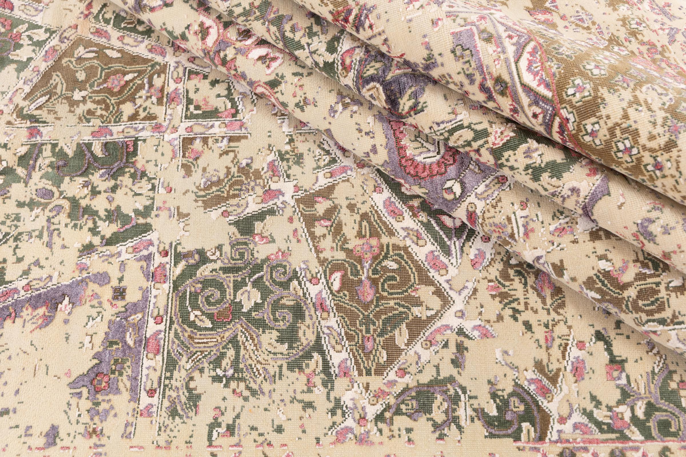 Νούμερο χαλιού: 2666100331612 Μέγεθος: 307x240 cm Πάχος: περίπου 12 mm κόμπους: 200 000 - 250 000 / m² Επεξεργασία: Οι κόμποι έγιναν με το χέρι σορός: Μαλλί στημόνι: μετάξι Καταγωγή: Ινδία Ηλικία: καινούργιο Βάρος: περίπου 26 kg Στο απόθεμα: Mοναδικός - Μόνο 1 σε απόθεμα