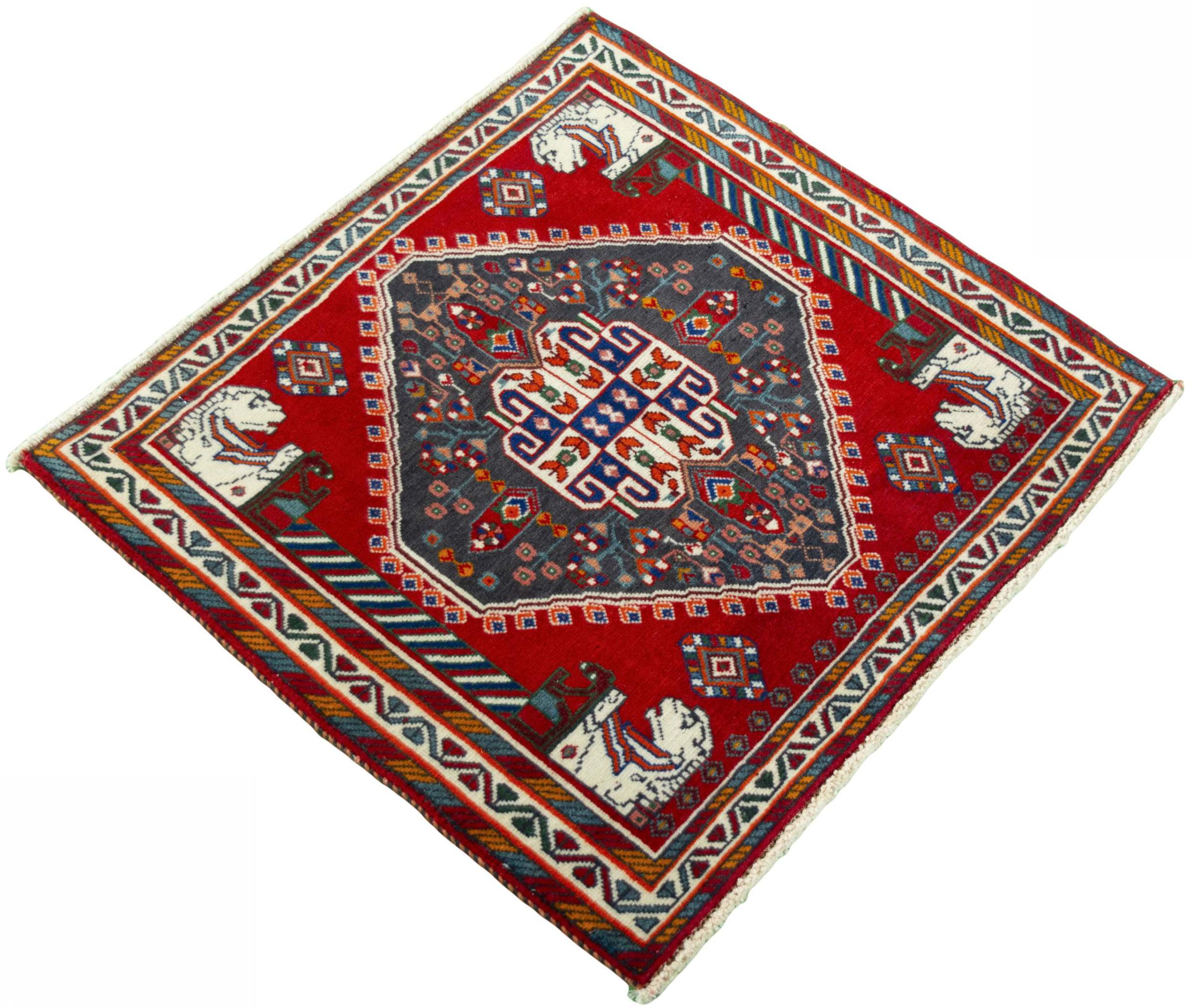Νούμερο χαλιού: 310573007673801 Μέγεθος: 64x69 cm Πάχος: περίπου 10 mm κόμπους: 120 000 - 150 000 / m² Επεξεργασία: Οι κόμποι έγιναν με το χέρι σορός: Με Μαλλί κλωσμένο στο χέρι στημόνι: Βαμβάκι Καταγωγή: Ιράν / Iran Ηλικία: καινούργιο Βάρος: περίπου 2 kg Στο απόθεμα: Mοναδικός - Μόνο 1 σε απόθεμα