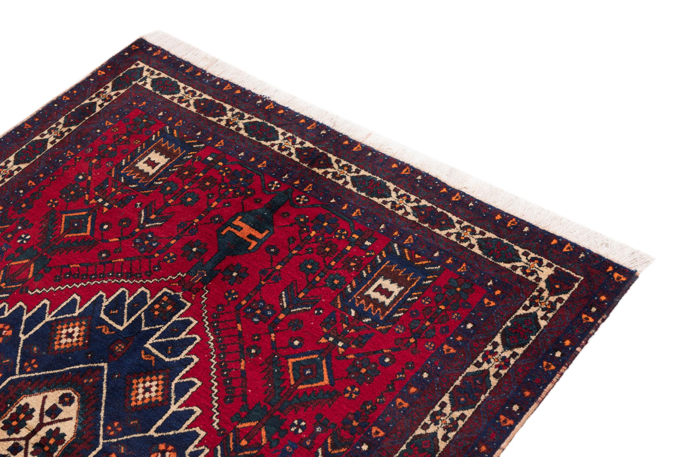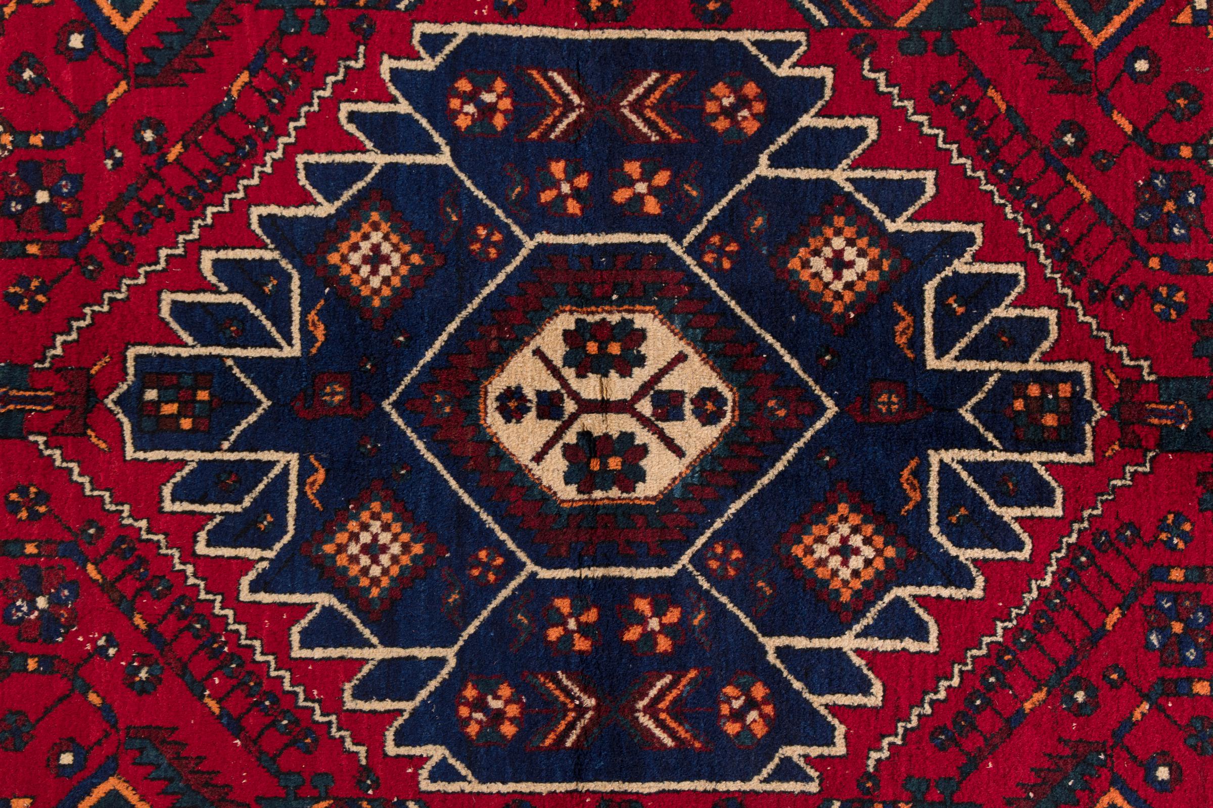 Αυτό το χαλί, με κόμπους από τους νομάδες Afshar, εντυπωσιάζει με τα κόκκινα χρώματα. Κάθε δωμάτιο δέχεται μια πολύ ιδιαίτερη ανατολίτικη πινελιά χάρη σε ένα πραγματικό περσικό χαλί Afshar. Ο γεωμετρικός σχεδιασμός εντυπωσιάζει κάθε λάτρη των Περσικών χαλιών και έχει διαχρονικό χαρακτήρα. Το μαλλί που χρησιμοποιείται στο σωρό είναι υψηλής ποιότητας. Τα περσικά χαλιά Afshar εξακολουθούν να βάφονται με φυτικές βαφές σήμερα.
