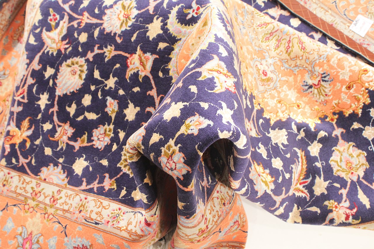 Νούμερο χαλιού: 77160026850 Μέγεθος: 211x157 cm Πάχος: περίπου 7 mm κόμπους: 450 000 - 500 000 / m² Επεξεργασία: Οι κόμποι έγιναν με το χέρι σορός: μαλλί με μετάξι στημόνι: Βαμβάκι Καταγωγή: Ιράν / Iran Ηλικία: καινούργιο Βάρος: περίπου 10 kg Γνωστός και ως Tabriz, Tabris, Täbris, Tebriz, Tebris, 40Raj, 50Raj Στο απόθεμα: Mοναδικός - Μόνο 1 σε απόθεμα