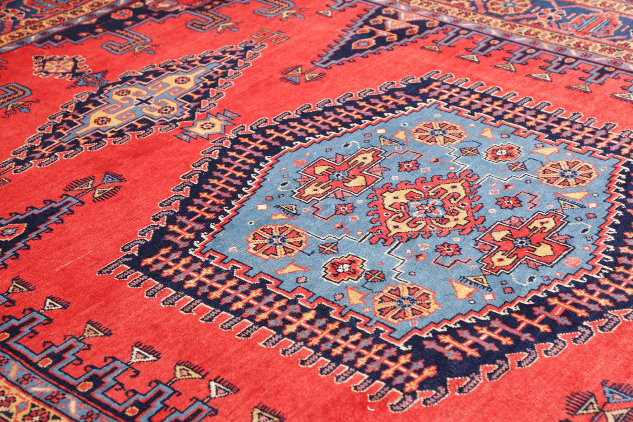 Αυτό το χαλί είναι κατασκευασμένο από χειροποίητο μαλλί προβάτου υψηλής ποιότητας. Στο Ιράν (πρώην Περσία), στο Αφγανιστάν και στο Πακιστάν ειδικότερα, το μαλλί εξακολουθεί να κλίνεται με το χέρι πριν αρχίσει ο πραγματικός κόμπος του χαλιού. Το μαλλί έχει αποδειχθεί ως φυσικό και εξαιρετικά ανθεκτικό υλικό στο πέρασμα των αιώνων. Μεταξύ άλλων, έχει ρυπογόνες και θερμομονωτικές ιδιότητες. Ταυτόχρονα, το μαλλί είναι ασύγκριτα απαλό και έχει φυσική γυαλάδα.