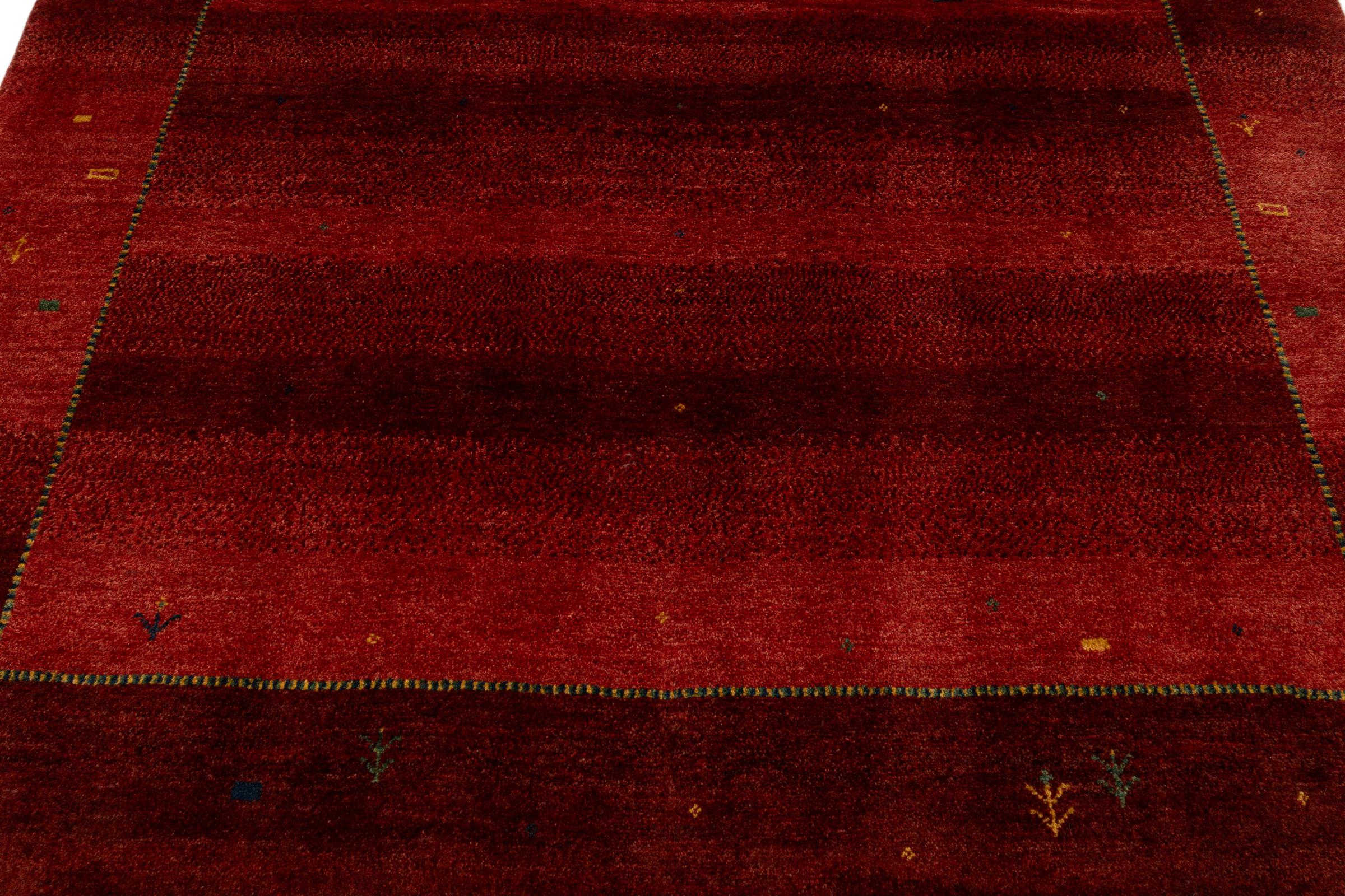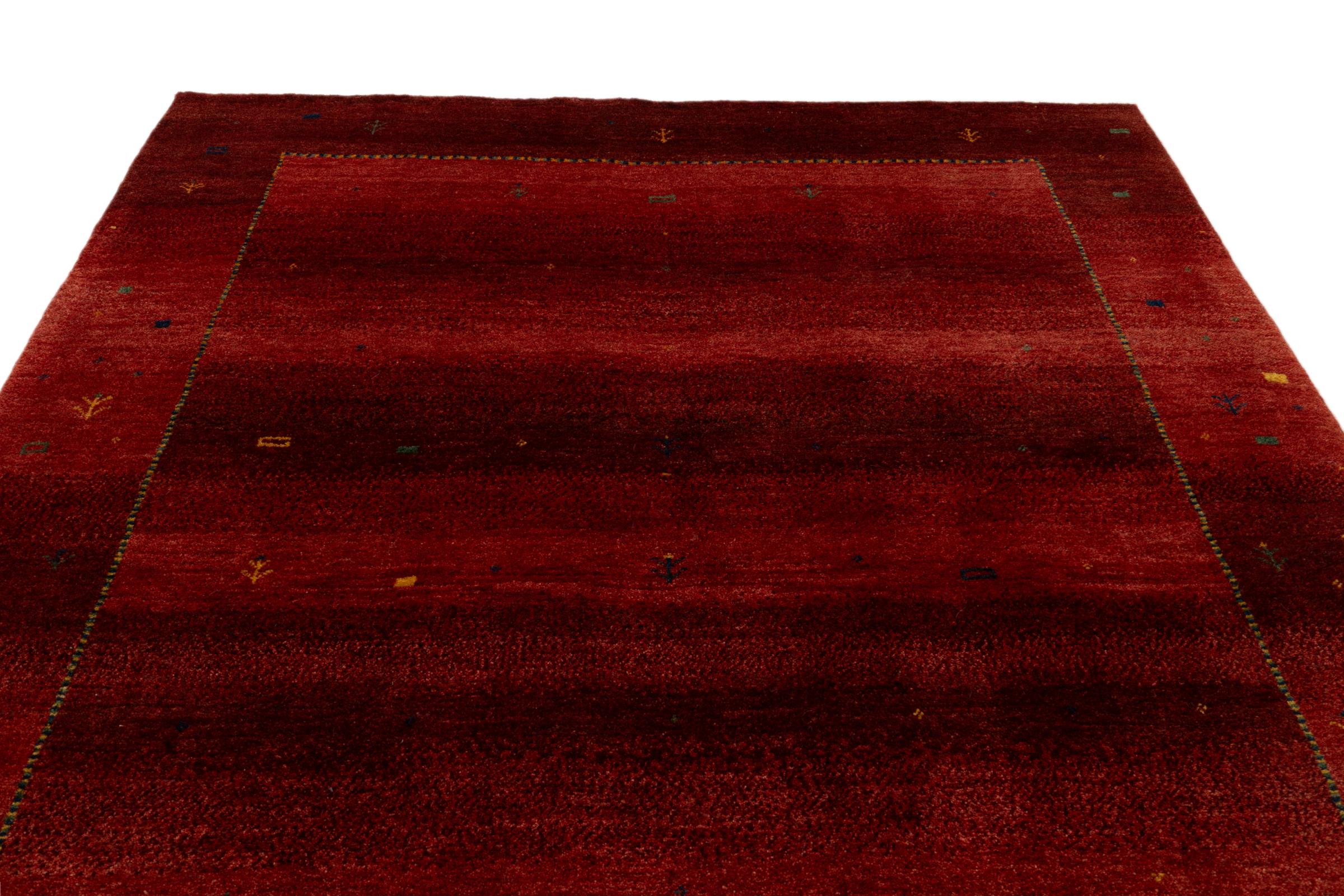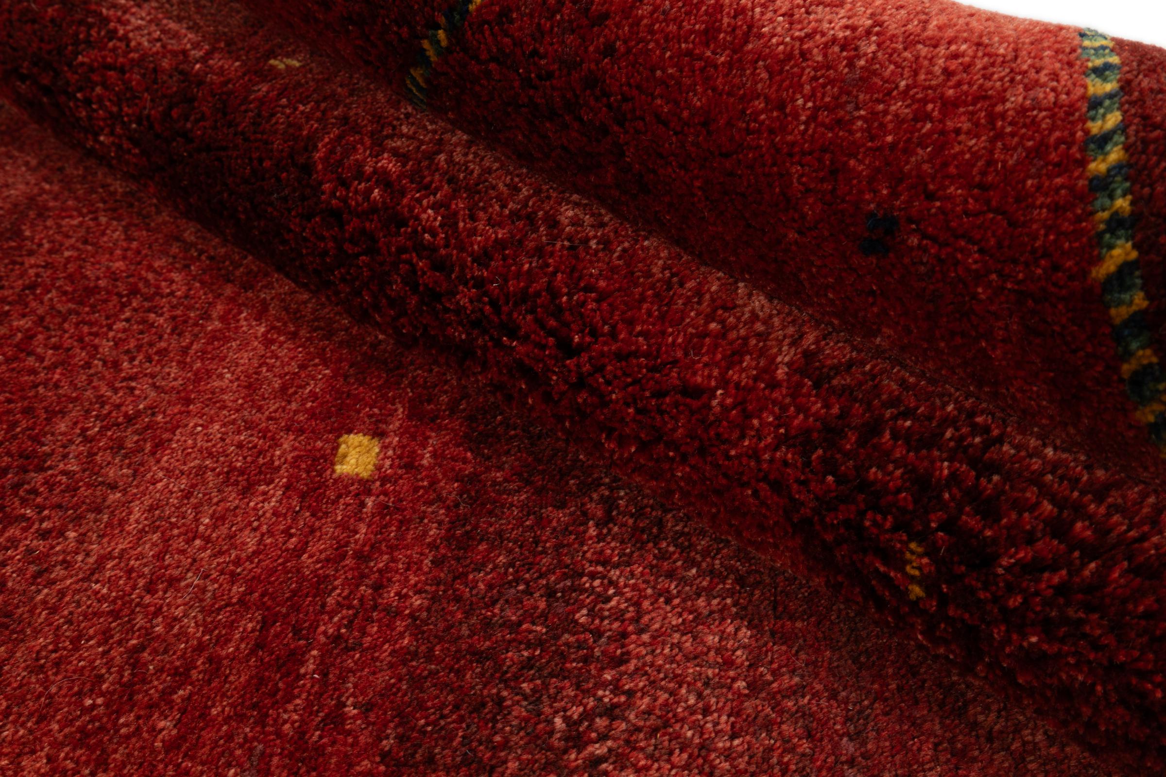 Αυτό το όμορφο χαλί είναι περσικό χαλί Gabbeh και είναι ένα από τα ποιοτικότερα χαλιά Gabbeh. Τα χαλιά δένονται από νομάδες ή ημινομάδες στο Ιράν σύμφωνα με την παραδοσιακή χειροτεχνία. Τα απλά μοτίβα και τα σχέδια είναι κυρίως εμπνευσμένα από το άμεσο περιβάλλον των νομάδων. Για παράδειγμα, καμήλες, δέντρα ή θάμνοι μπορούν να βρεθούν στα παραδοσιακά χαλιά. Τα περσικά χαλιά Gabbeh κατασκευάζονται από μαλλί από κοπάδια προβάτων που εκτρέφονται τοπικά. Ως εκ τούτου, το μαλλί ως επί το πλείστον εξακολουθεί να κλώνεται με το χέρι. Κάθε ένα από αυτά τα ανατολίτικα χαλιά ενσαρκώνει έναν μοναδικό χαρακτήρα αιώνων πολιτισμού.