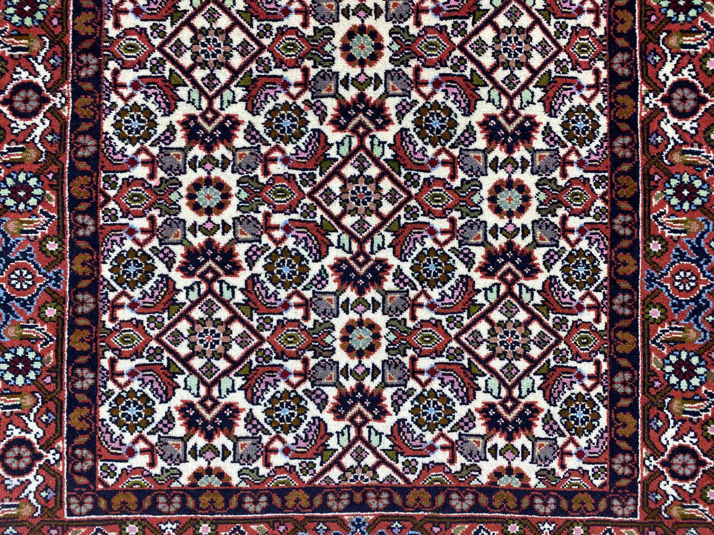 Αυτό το χαλί είναι κατασκευασμένο από χειροποίητο μαλλί προβάτου υψηλής ποιότητας. Στο Ιράν (πρώην Περσία), στο Αφγανιστάν και στο Πακιστάν ειδικότερα, το μαλλί εξακολουθεί να κλίνεται με το χέρι πριν αρχίσει ο πραγματικός κόμπος του χαλιού. Το μαλλί έχει αποδειχθεί ως φυσικό και εξαιρετικά ανθεκτικό υλικό στο πέρασμα των αιώνων. Μεταξύ άλλων, έχει ρυπογόνες και θερμομονωτικές ιδιότητες. Ταυτόχρονα, το μαλλί είναι ασύγκριτα απαλό και έχει φυσική γυαλάδα.