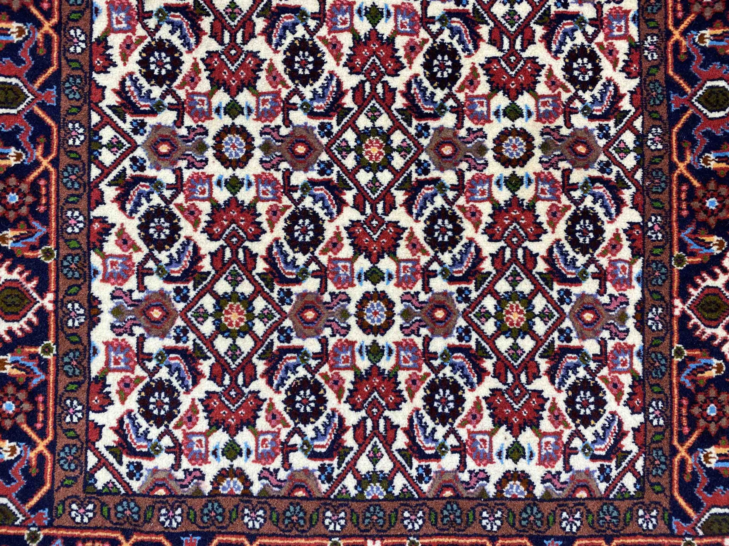 Αυτό το χαλί είναι κατασκευασμένο από χειροποίητο μαλλί προβάτου υψηλής ποιότητας. Στο Ιράν (πρώην Περσία), στο Αφγανιστάν και στο Πακιστάν ειδικότερα, το μαλλί εξακολουθεί να κλίνεται με το χέρι πριν αρχίσει ο πραγματικός κόμπος του χαλιού. Το μαλλί έχει αποδειχθεί ως φυσικό και εξαιρετικά ανθεκτικό υλικό στο πέρασμα των αιώνων. Μεταξύ άλλων, έχει ρυπογόνες και θερμομονωτικές ιδιότητες. Ταυτόχρονα, το μαλλί είναι ασύγκριτα απαλό και έχει φυσική γυαλάδα.